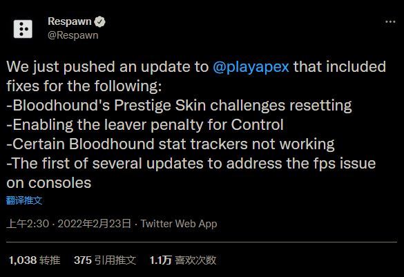 重生现已为《Apex英雄》发布了一个新补丁,旨在解决第 12 赛季“蔑视”上线时引入的一些问题。