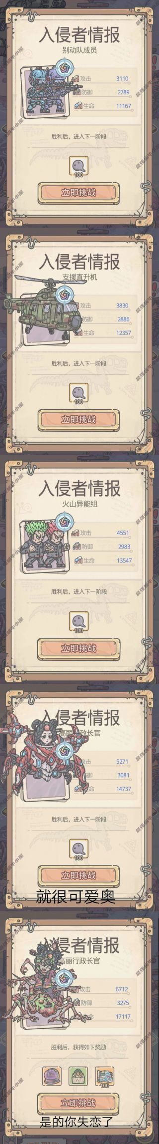 前两个都是你老婆哦!(第二个大个儿也是,很明显蜗牛饥不择食)最后就是卡片兑换了。这个其实没什么推荐,主要就是能换装备就换装备。