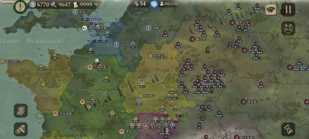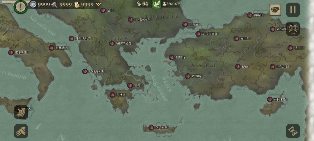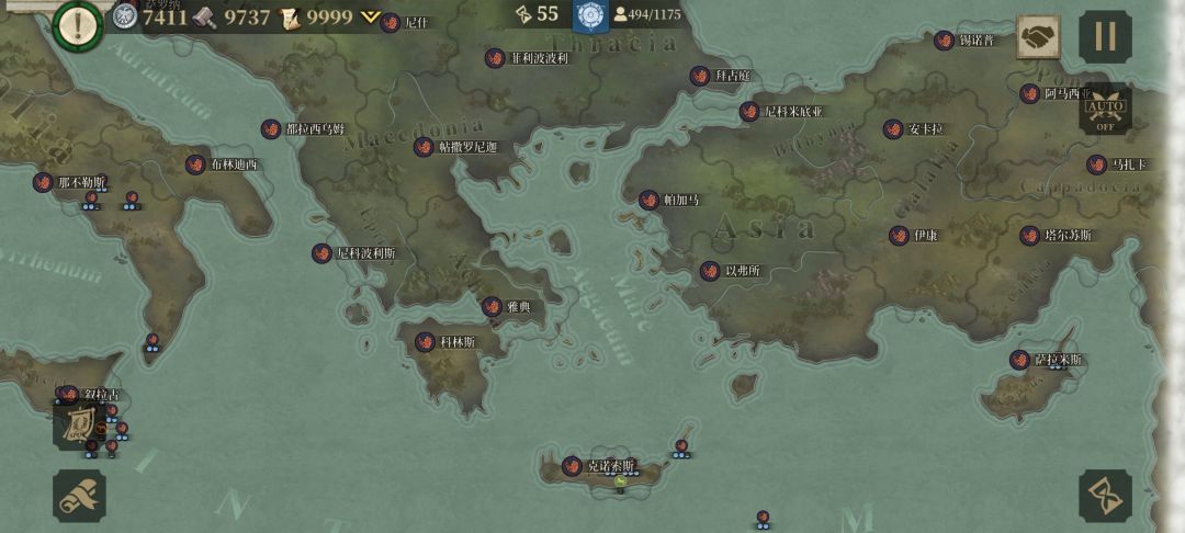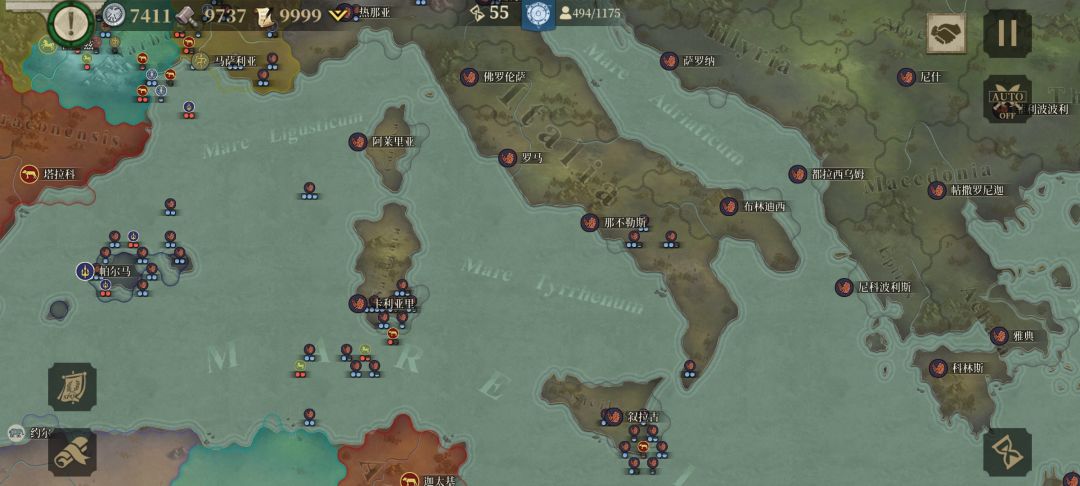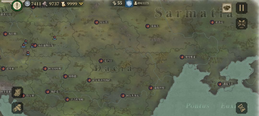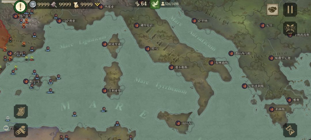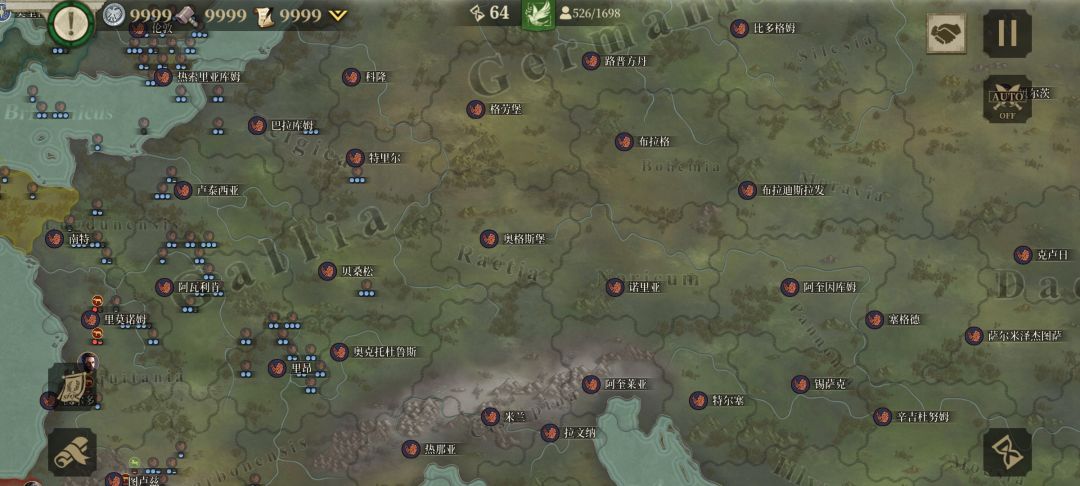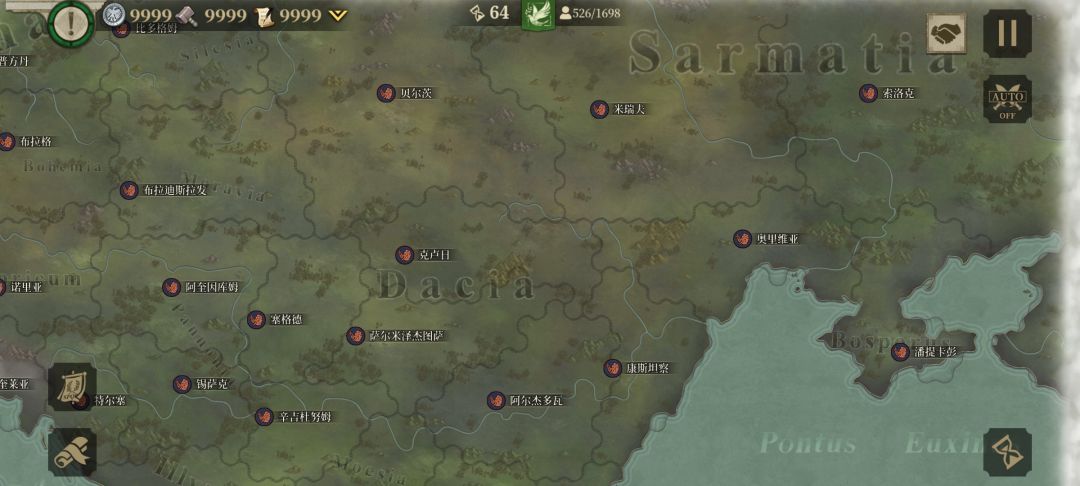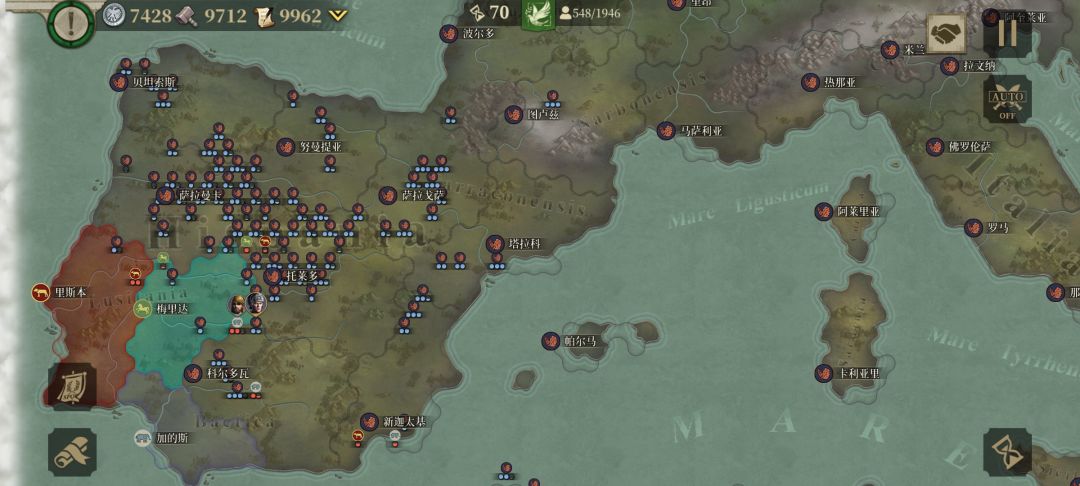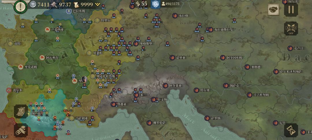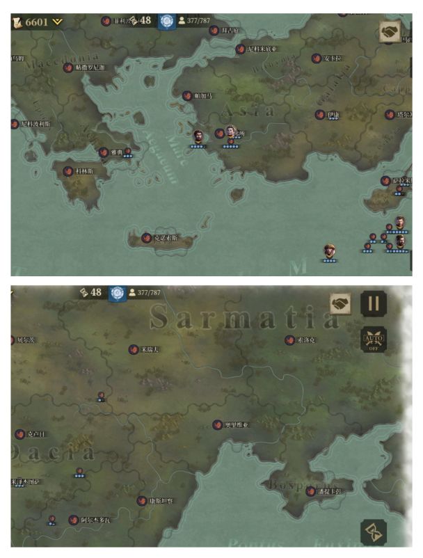 我先与周边盟友歼敌军,待平定后我掉头,调点兵把盟友的家占领,按照这个思路我建立了东起小亚细亚、东欧平原,西到伊比利亚半岛;北临北海,南望中非,囊括地中海、爱琴海、黑海的封建君主等级制的帝国,从偏安一隅的本都王国的附属国到以罗马为新首都环地中海的大帝国,我用了76回合。![[嗒啦啦2_累]](https://img.tapimg.com/market/images/7bc63f2ddd8fef972ec60e42311e1cac.gif)