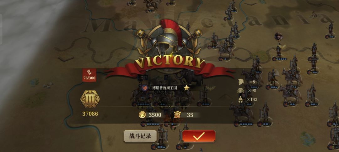 总计耗时76回合、任命8名将领、阵亡两名,占领并发展了98座城市中心、剩142支军团。![[嗒啦啦2_我好菜]](https://img.tapimg.com/market/images/0827e8f080b769074b9257fafe25b00d.gif)