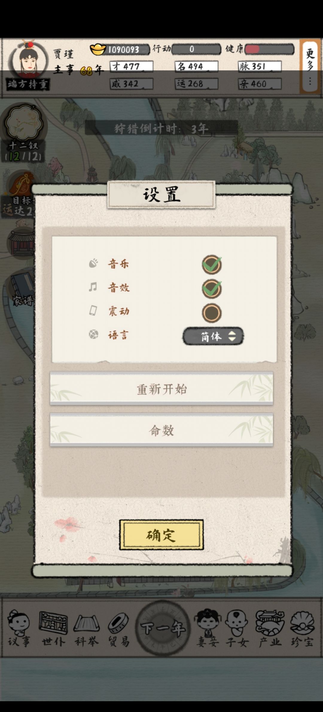 2.科举:比较稳定的经济来源。基本只要考每次就能考中,不需要做选择题,时间到了就点备考或者立即考试,自动考中。