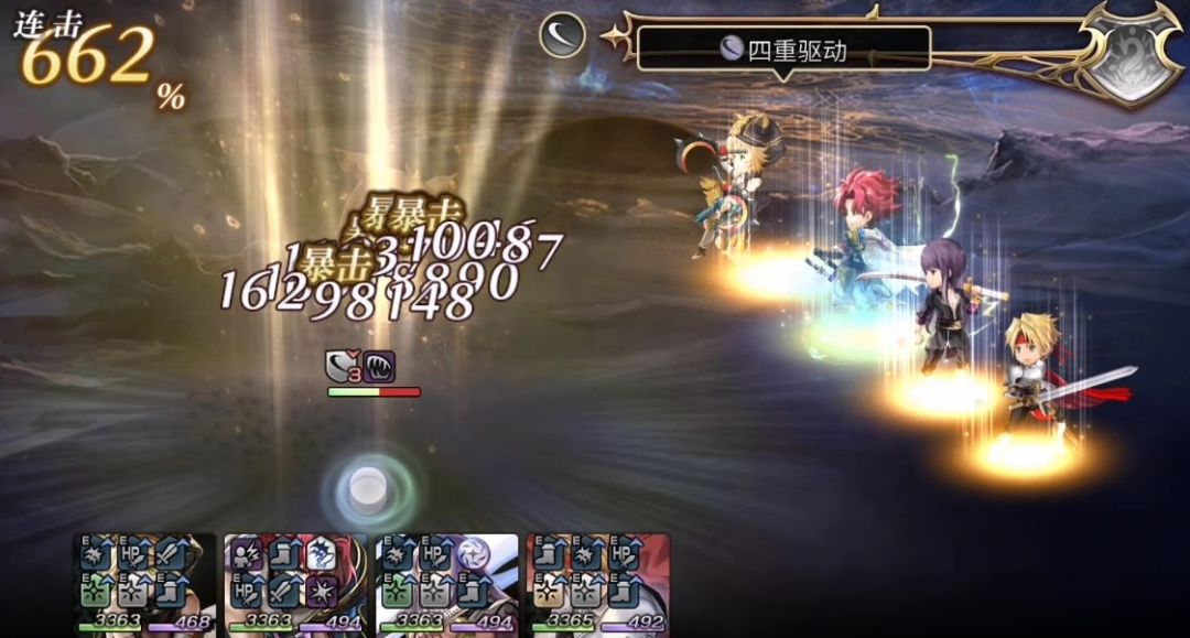 究极打条+combo人。开启疯狂之力后,每次电光雷刃提供5点额外AF条和45的高额combo(combo倍率为独立伤害乘区),多数情况下,雷刀一个人提供的combo比其它三人之和更多。同时每轮5点额外AF条往往能支持额外的AF轮数。虽然动画较慢,但另一个五星技能可以为自己提供50速度buff,不会拖累队友。
