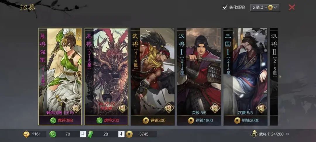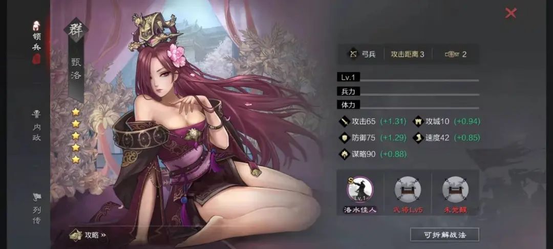 道理大家都懂了,那么具体有哪几个开荒将好用呢?五星将里首推甄洛,大家记住,甄洛是五星开荒神将,五星将里2C的本就不多,好用的开荒将唯甄洛一人。而四星开荒将里则是大乔和李儒为最优解,大乔带恢复,李儒带控制,两个武将强度平分秋色,上谁都行。所以本啡建议在开统帅厅的同时,如果有条件的,可以在名将来几发五连抽,如果说可以抽到上述三个武将做中军,那么恭喜你,在前期开荒旅程中将会十分的舒服!