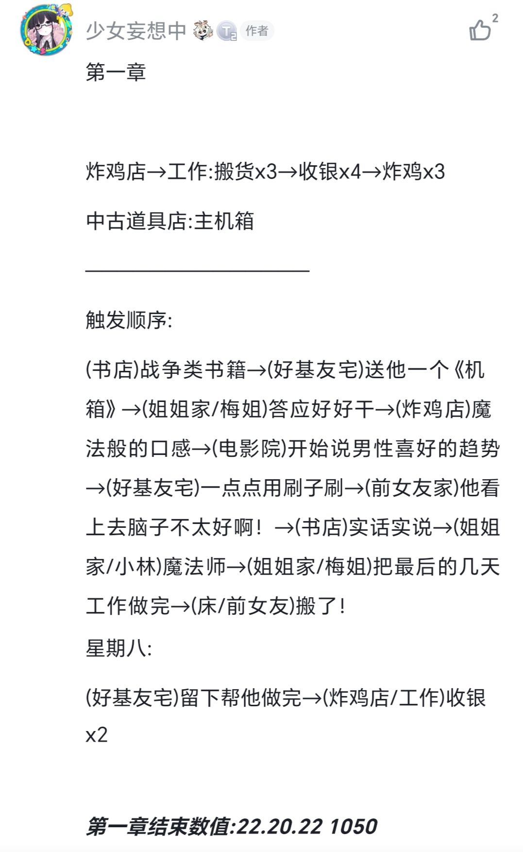 需要注意写在触发顺序前的工作和训练是需要在卡属性或卡剧情的时候使用的,不过提前点了也没关系……