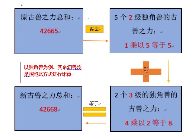 首先请熟记此原则:原古兽之力-合成需要的 + 新幻兽的古兽之力 = 现在的古兽之力