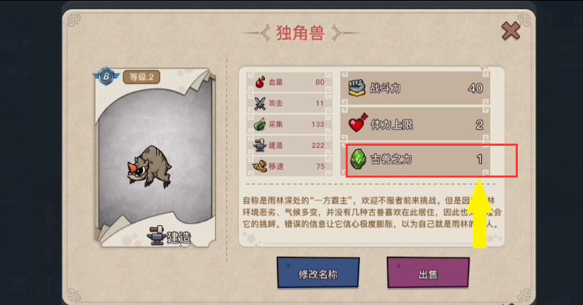 第二步:看清2级独角兽和3级独角兽分别是多少古兽之力!!!