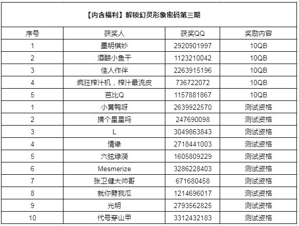 (已开奖)【内含福利】解锁幻灵形象密码第三期