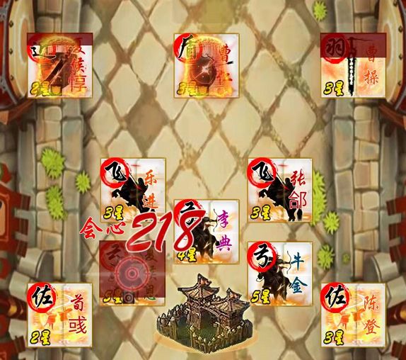 前排:采用3T阵型,曹仁、夏侯惇、曹操。不用曹操为主T,怕扛不住。但可以用曹操当边路T,加快对敌方的消耗。