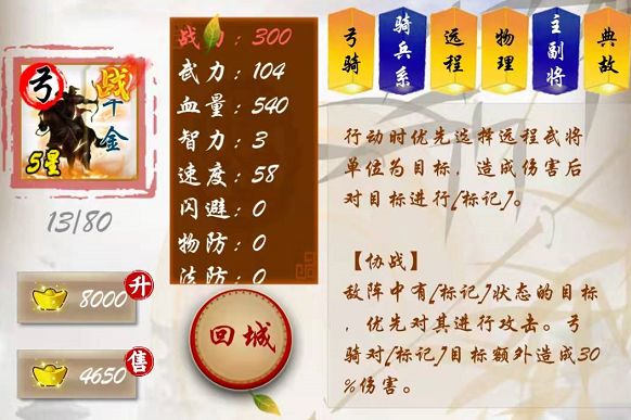 这个兵种新版本中有所调整。可以看出为自身添加【无敌】的概率很低,但若受到暴击和会心的时候,概率会大幅提升,可谓遇强则强。