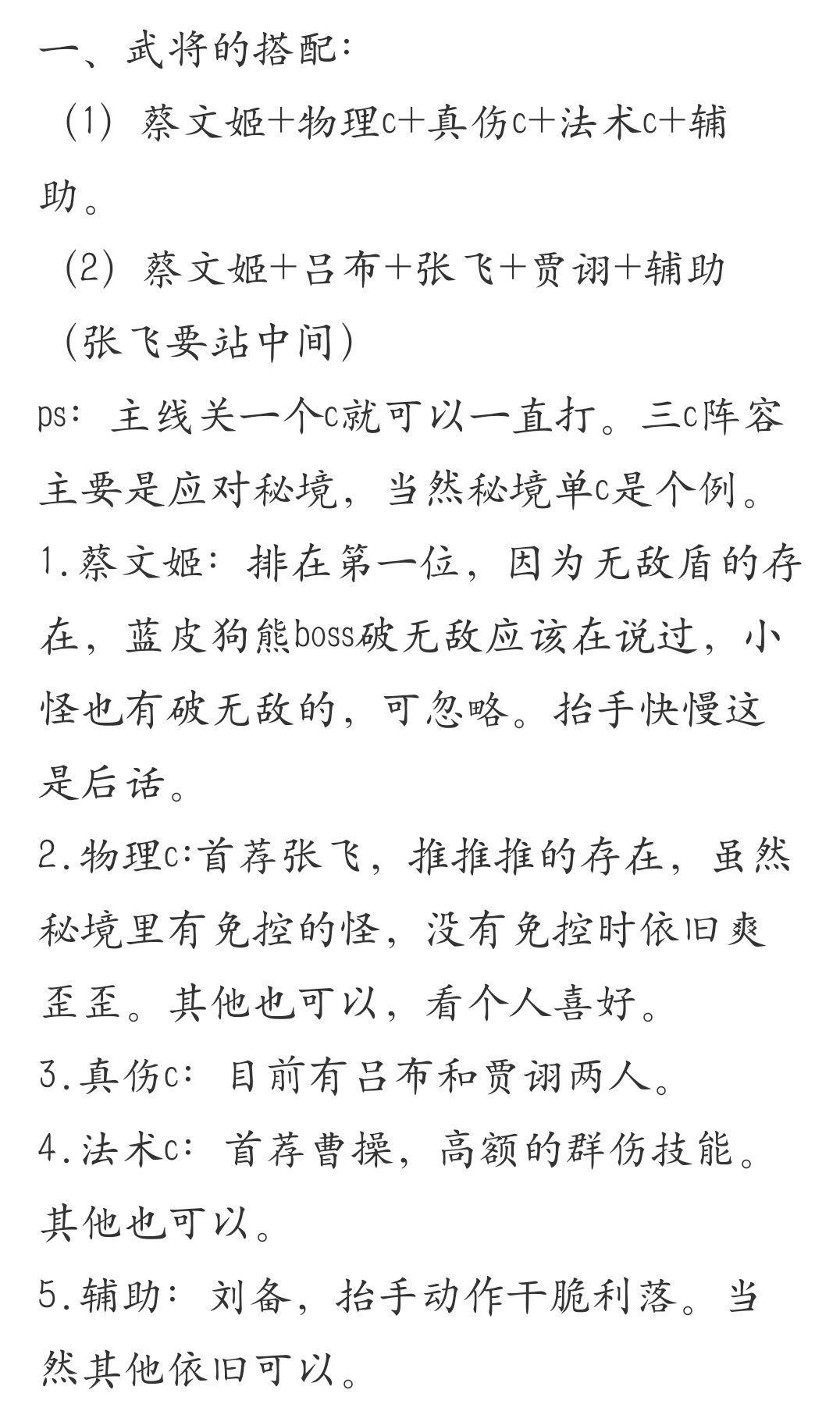 1.这是之前的阵容推荐。总体思路没有变,新人入坑优选真伤武将,堆金币,升级真伤武将。