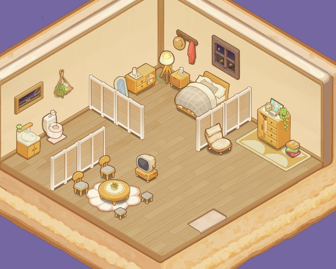 P1右下角这个圆形小桌子和地板搭配得属实合我的心意