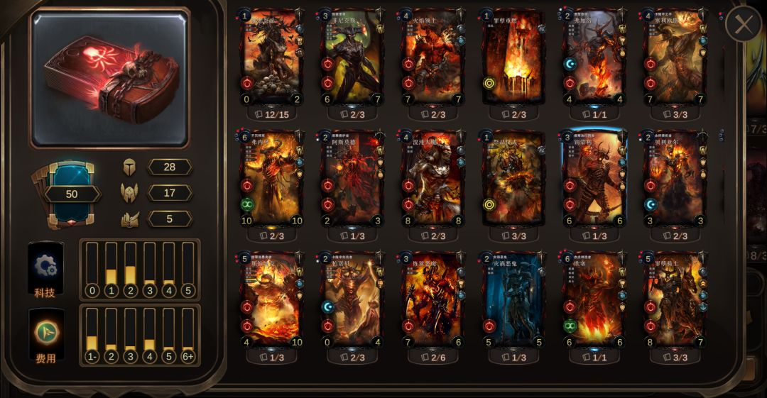 6费6-6看起来很弱,但是后期一下就是15-15,恶魔内战能奔着25-25去,还有个粉碎,这游戏又没有单解的牌,牺牲两个有弗加洛也可以轻松解决,后期下主路直接等着赢就行了,必带。
