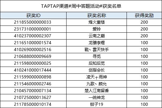 恭喜以下主公获得本次活动奖励,奖励会在7个工作日内发到各位主公的游戏内邮;