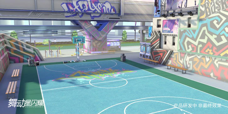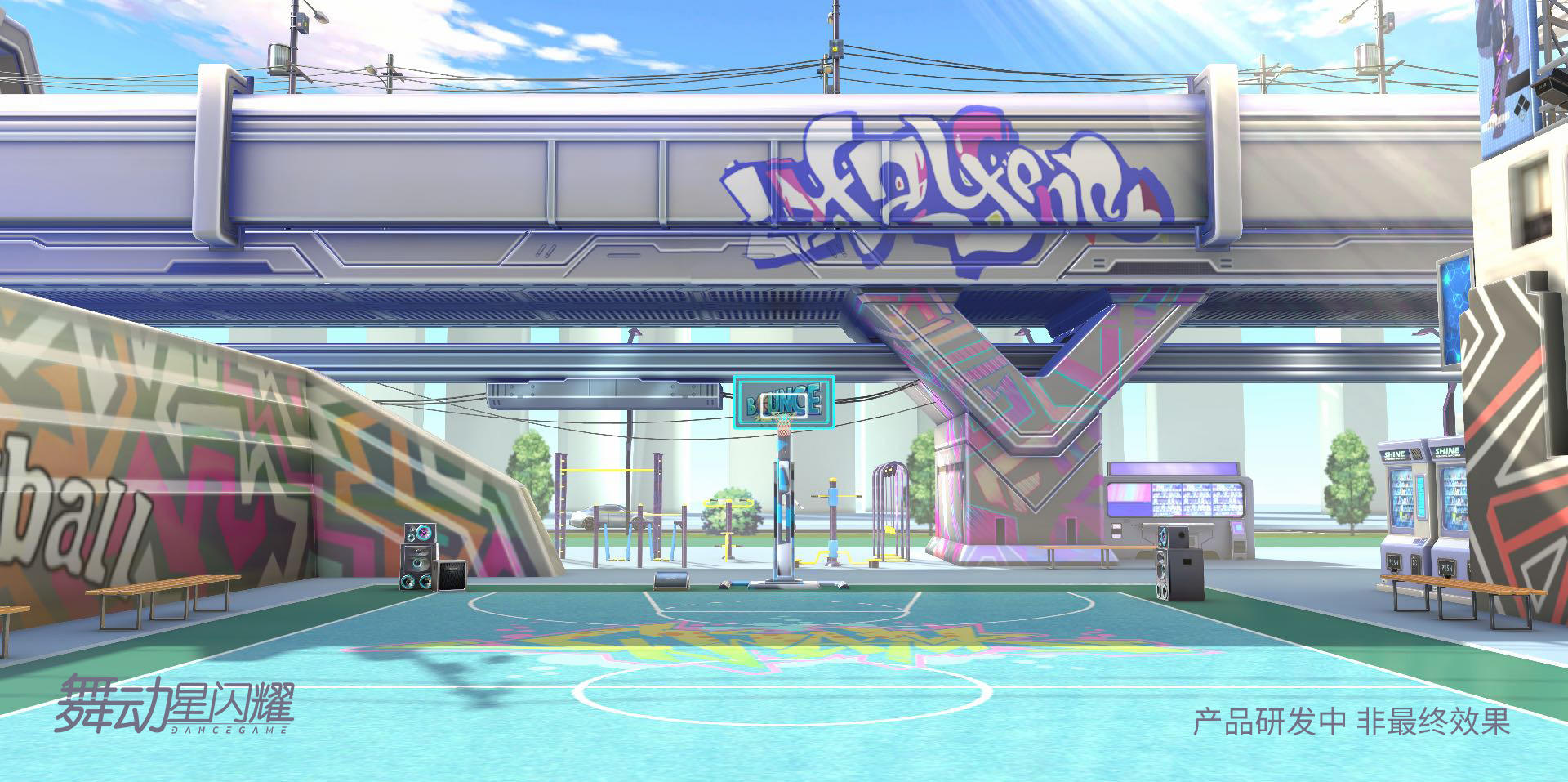 这个以街头球场为名的舞台,坐落于高架桥下,一个不起眼的街头。除去传统篮球场的摆设外,在球场的边上,还设置了用来放音乐的音响,节奏与舞步,在音浪中一同走向巅峰!舞台除了主体和谐的蓝色外,球场随处可见的涂鸦,也彰显着街头篮球文化的独一无二——篮板、地面和高架桥旁是不同色彩的交织,这就像舞者们的舞蹈一样,每一步都是多姿多彩。