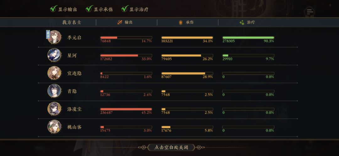 灭火队中可以用洛陵尘换掉逍遥,ss的面板增强输出。我刚拉的洛陵尘练度不高,2700的攻击,占全队50%左右的输出。