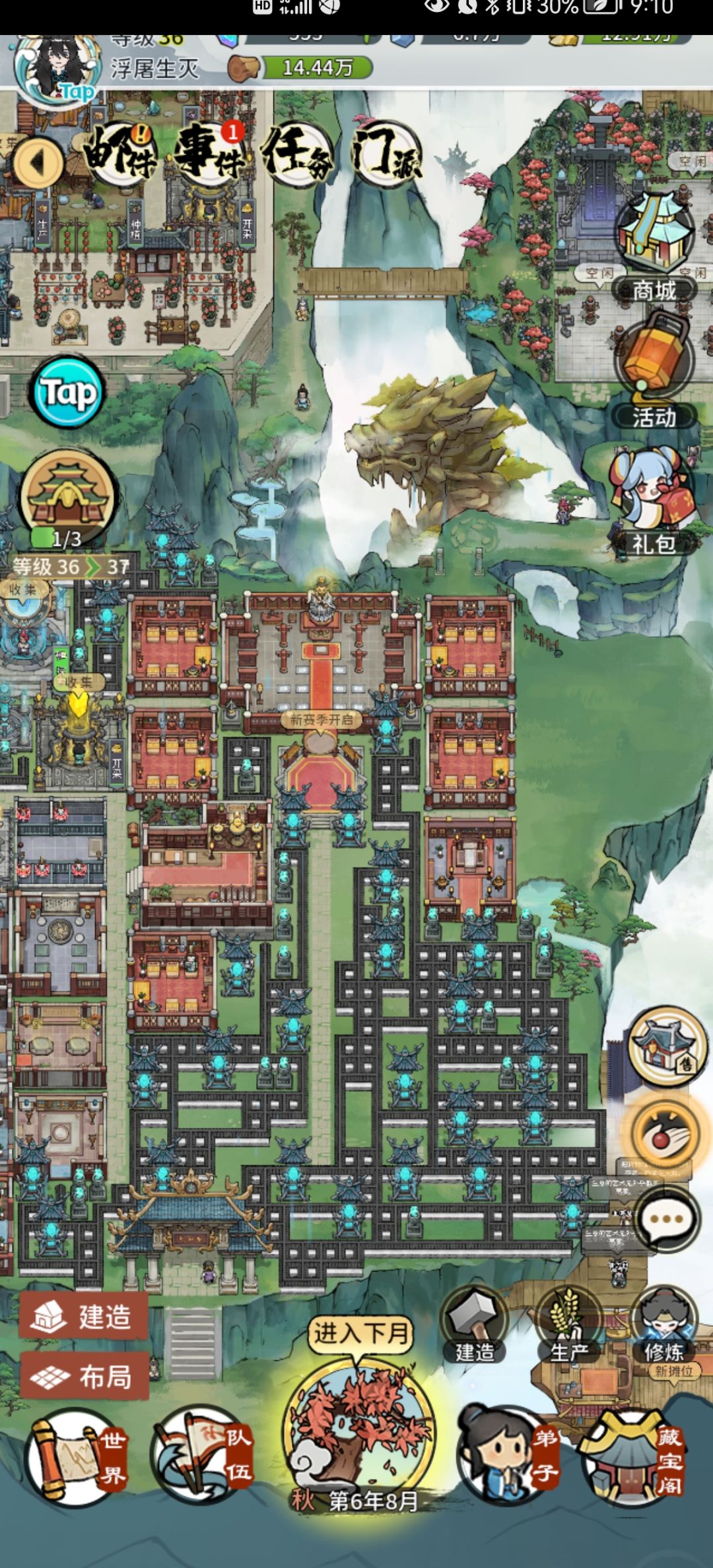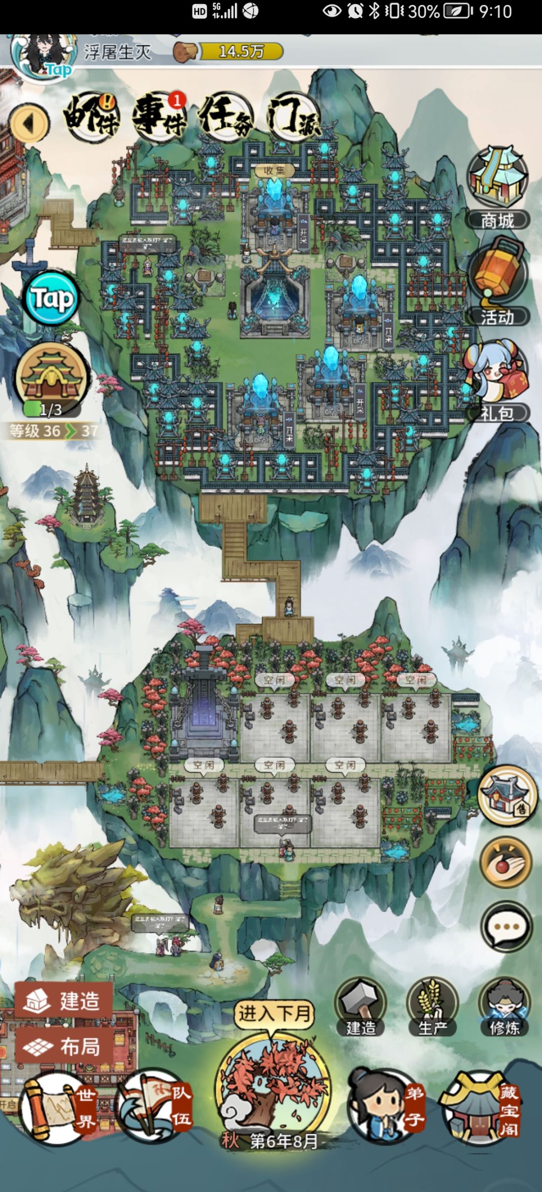 灵石矿山和木材都只留了一个 因为点一个就可以一键收取