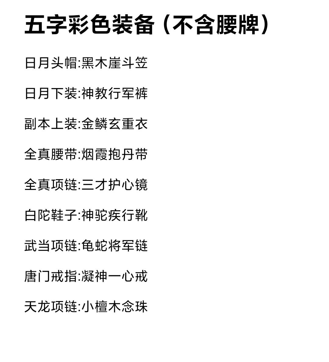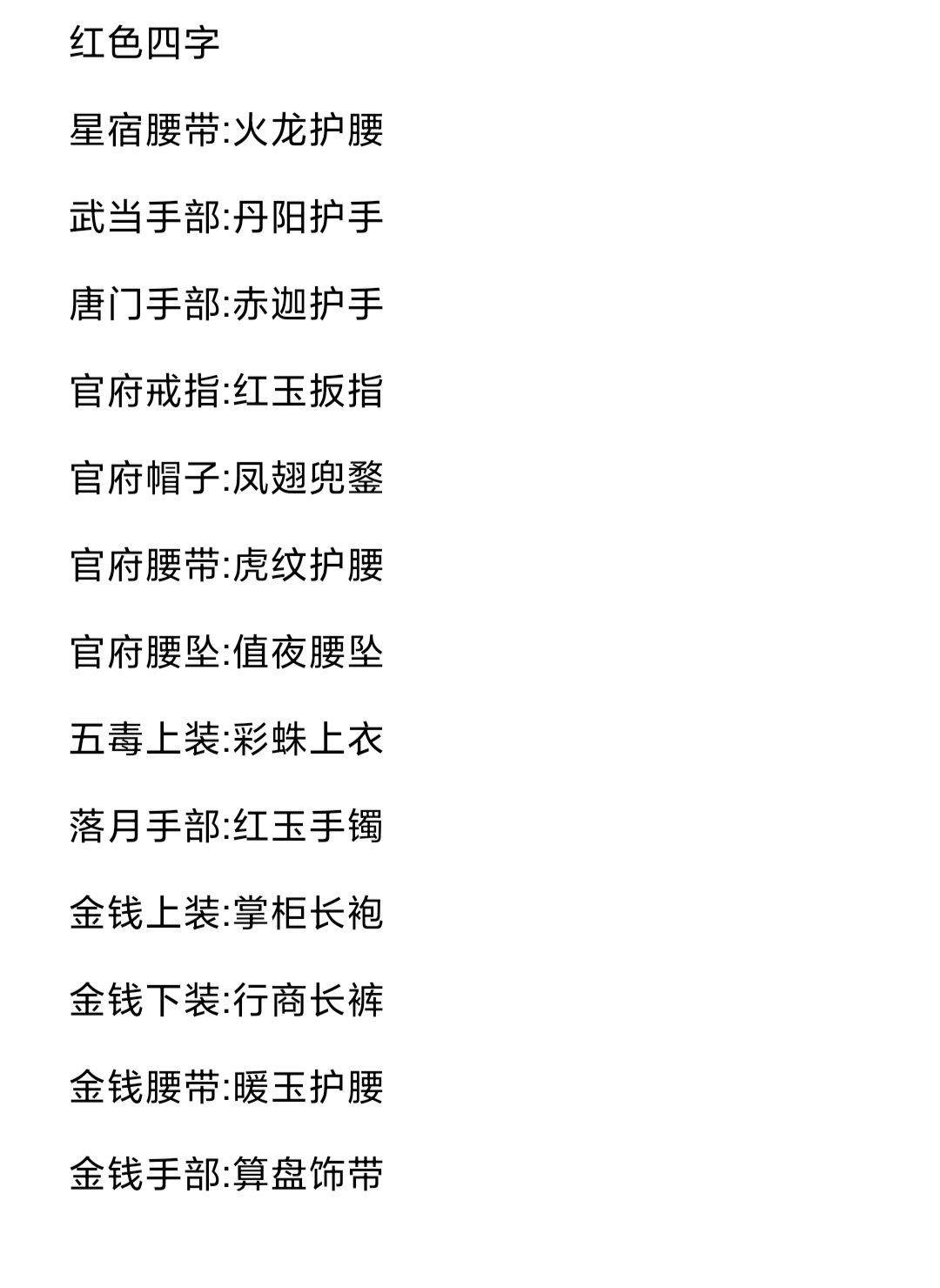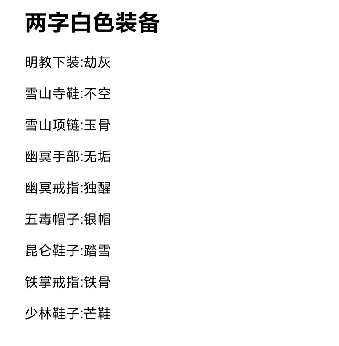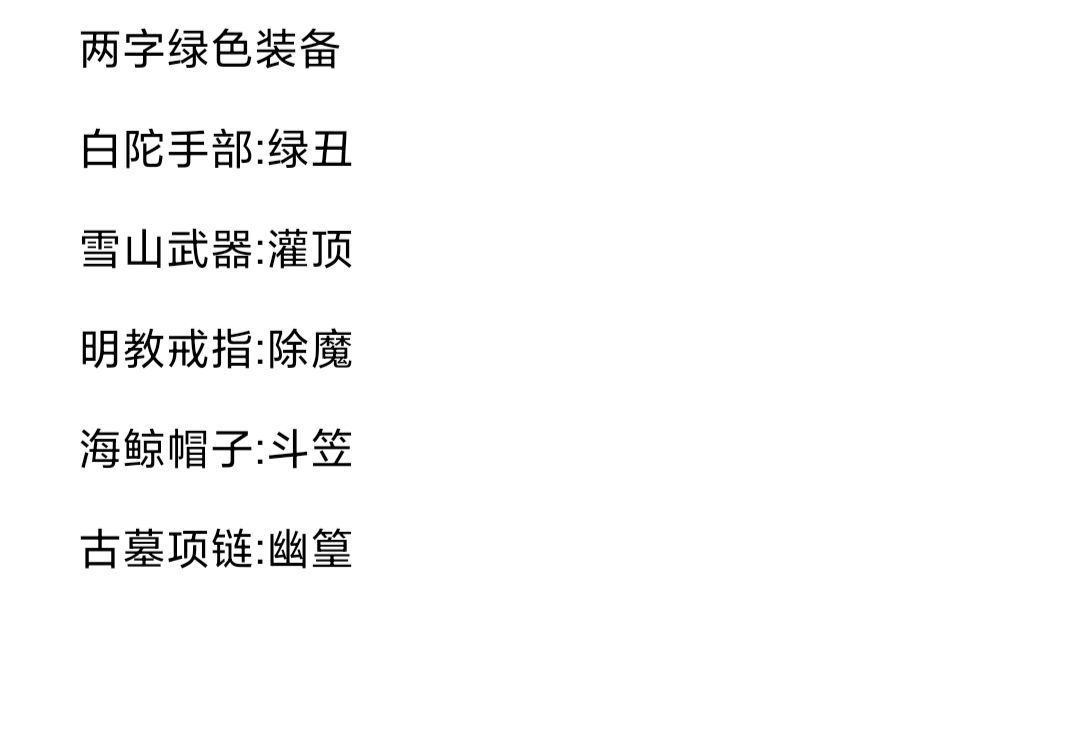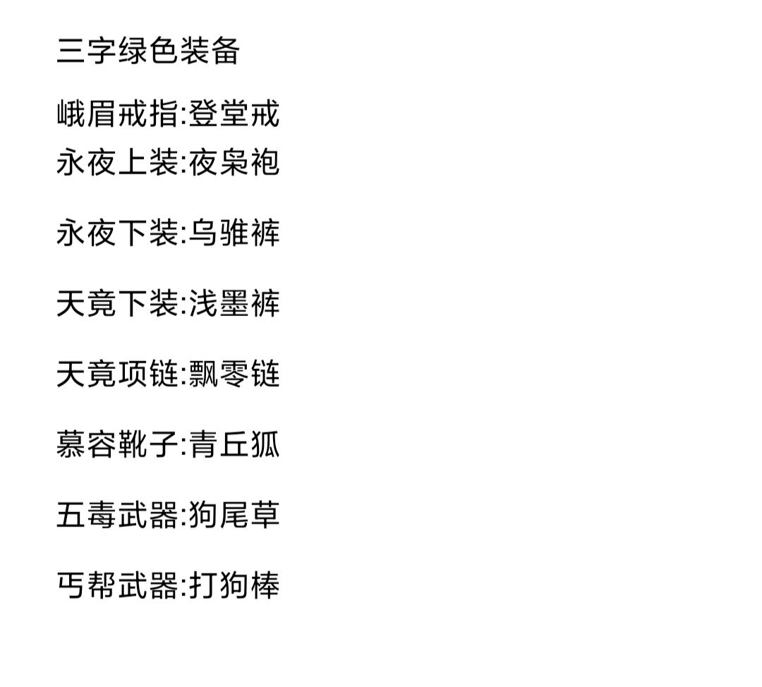 根据群里大佬整合门派声望装备,自己又整理了一下字数颜色一样的装备(有点强迫症)只整理了自己喜欢的颜色,正好在新区有两个三转的小号,可以慢慢加门派攒装备,不氪金整那一套了