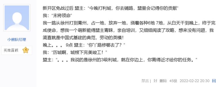 盟主:“。。。我说的是徐州的3级利城,就在你边上,你离得近才给你的任务。”