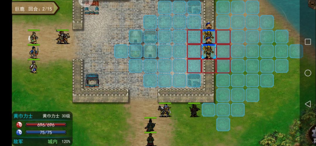 要注意两线一起打,不然时间不够。所以两组人要分一个有定身功能的武将。我用法师比较多就是避免近战,这个时候出了典韦,黄巾首领打我其他武将都是秒杀。还可以利用贾诩的一次免伤去吸引过来。