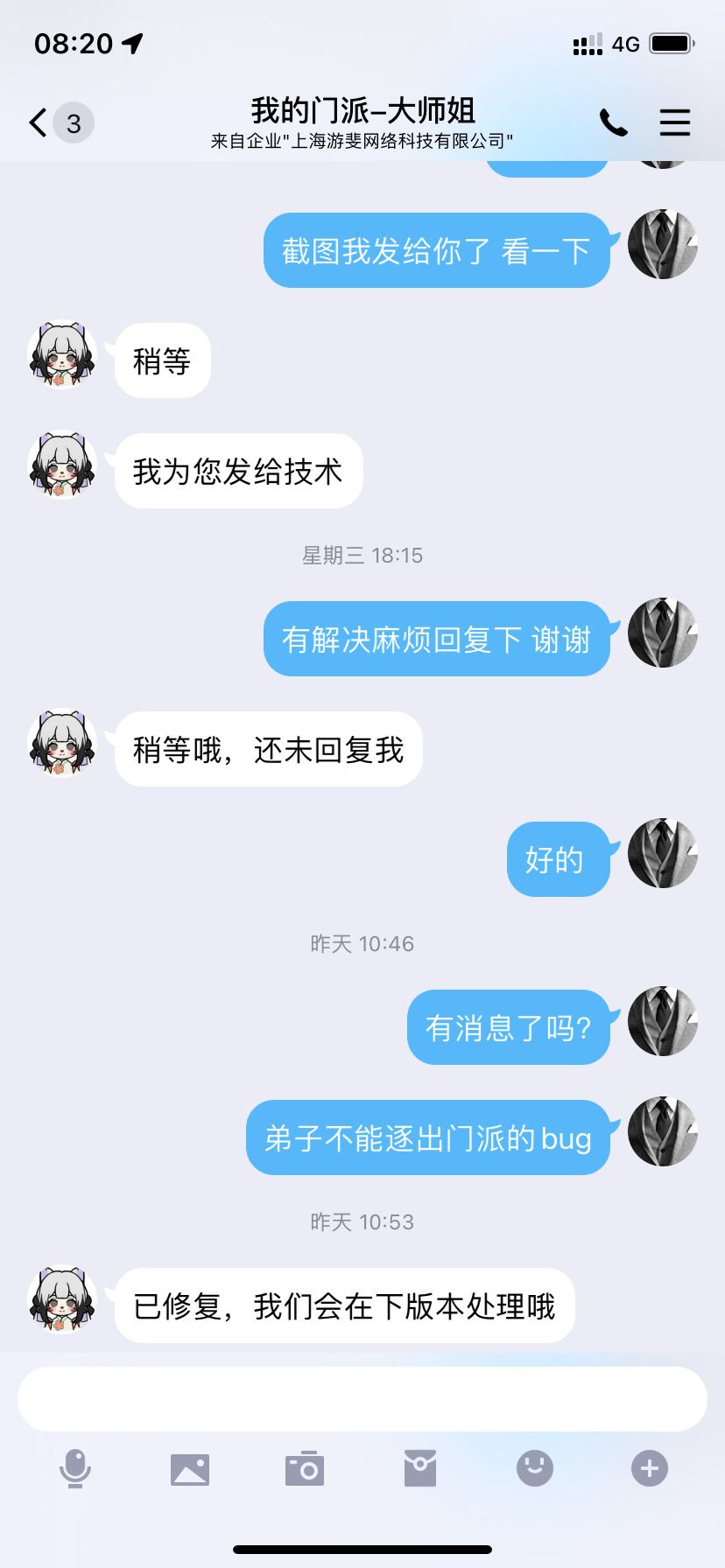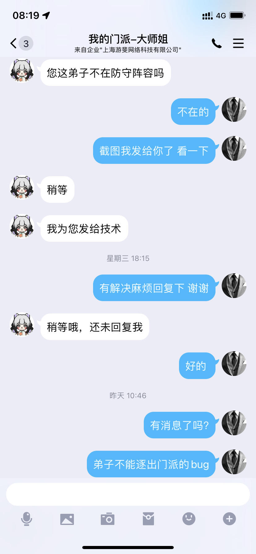 第一次遇到那么搞笑的游戏公司 擂台防守阵容bug问题 弟子明明不在防守阵容里 一直驱逐不了 跟客服反馈 还说已修复 非要在下版本更新