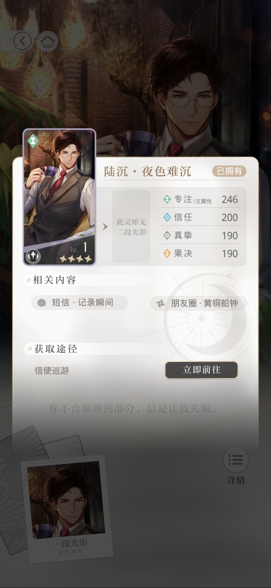 陆沉,夜色难沉,主属性专注(绿)