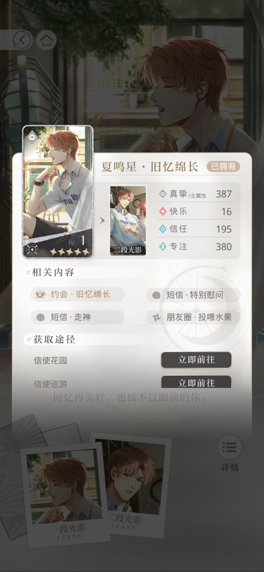 夏鸣星,旧忆绵长,主属性真挚(白)