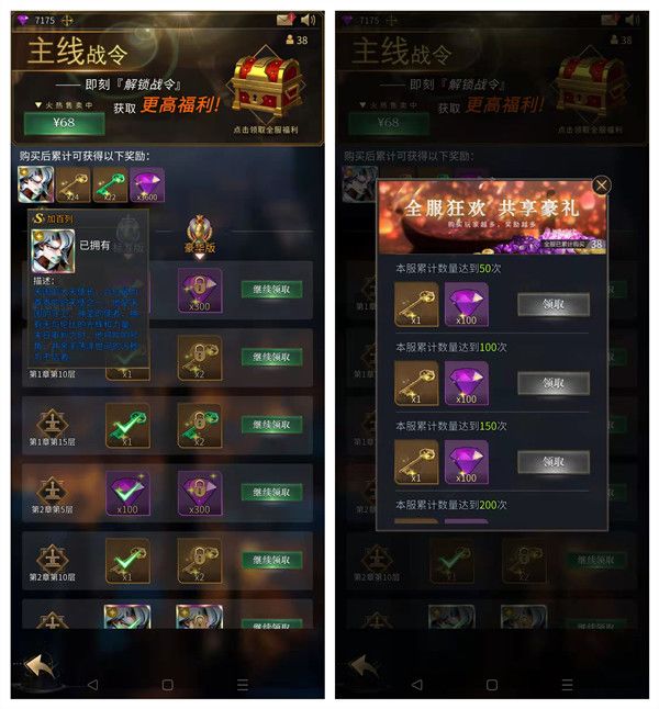 活动奖励:钻石*200,黄金钥匙*1,S级随机战魂碎片*15