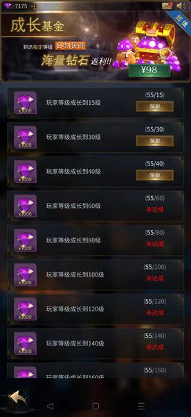 四:成长基金,到达指定等级获得海量钻石返利!
