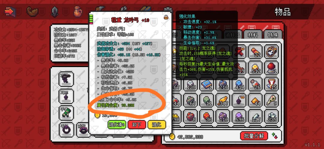 契合度越高!越高!武器加成的攻击越高!!说白了就是只要契合度高攻击力就高!契合度低攻击力就低!那么怎么提高契合度那就要从加属性点!属性点!属性点!如图