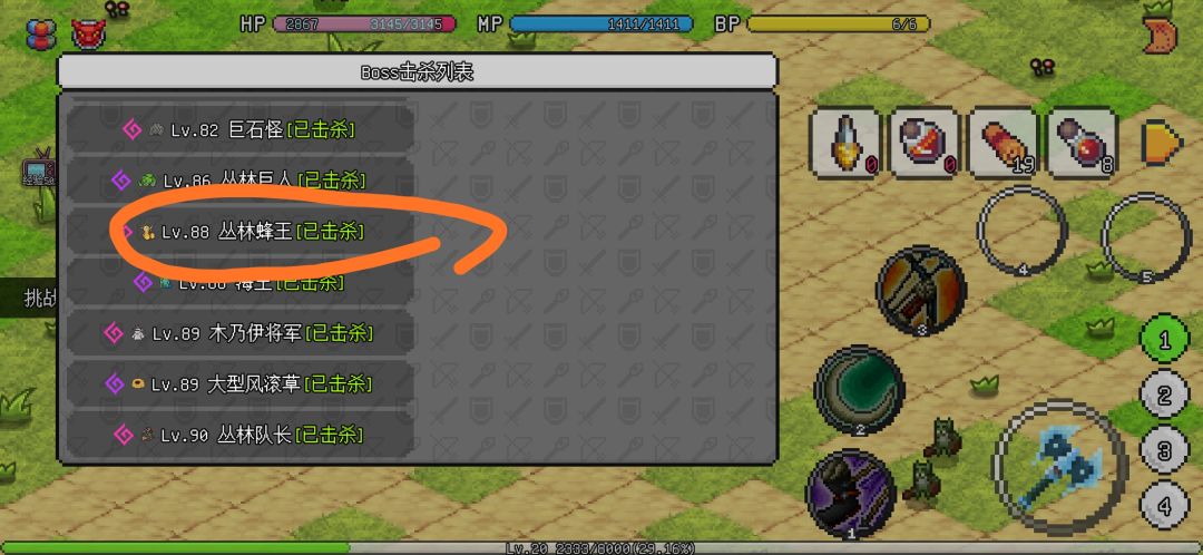 就像如此后撤步拉扯慢慢磨!装备好一点的60多级就可以刷下一个boss