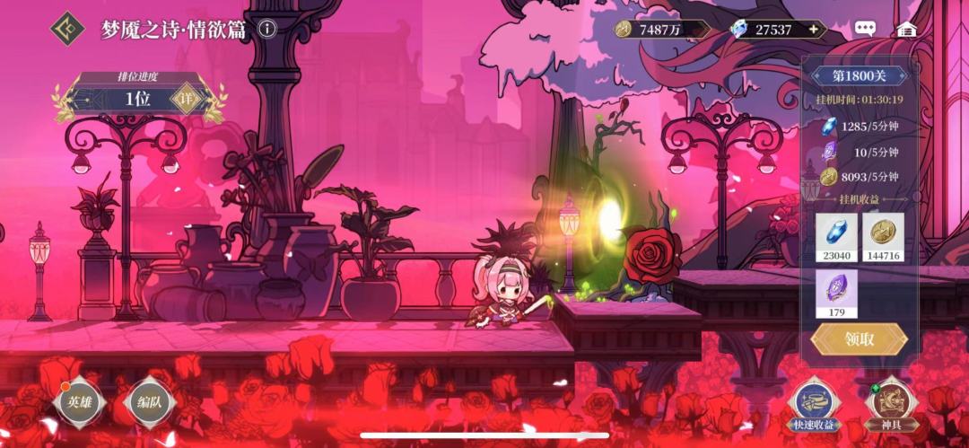 历经24个小时梦魇终于毕业了。1800层的boss血更厚,千夜强杀的方法已经行不通了,因此通关方法目前只有爱琳娜一个,具体配置如下: