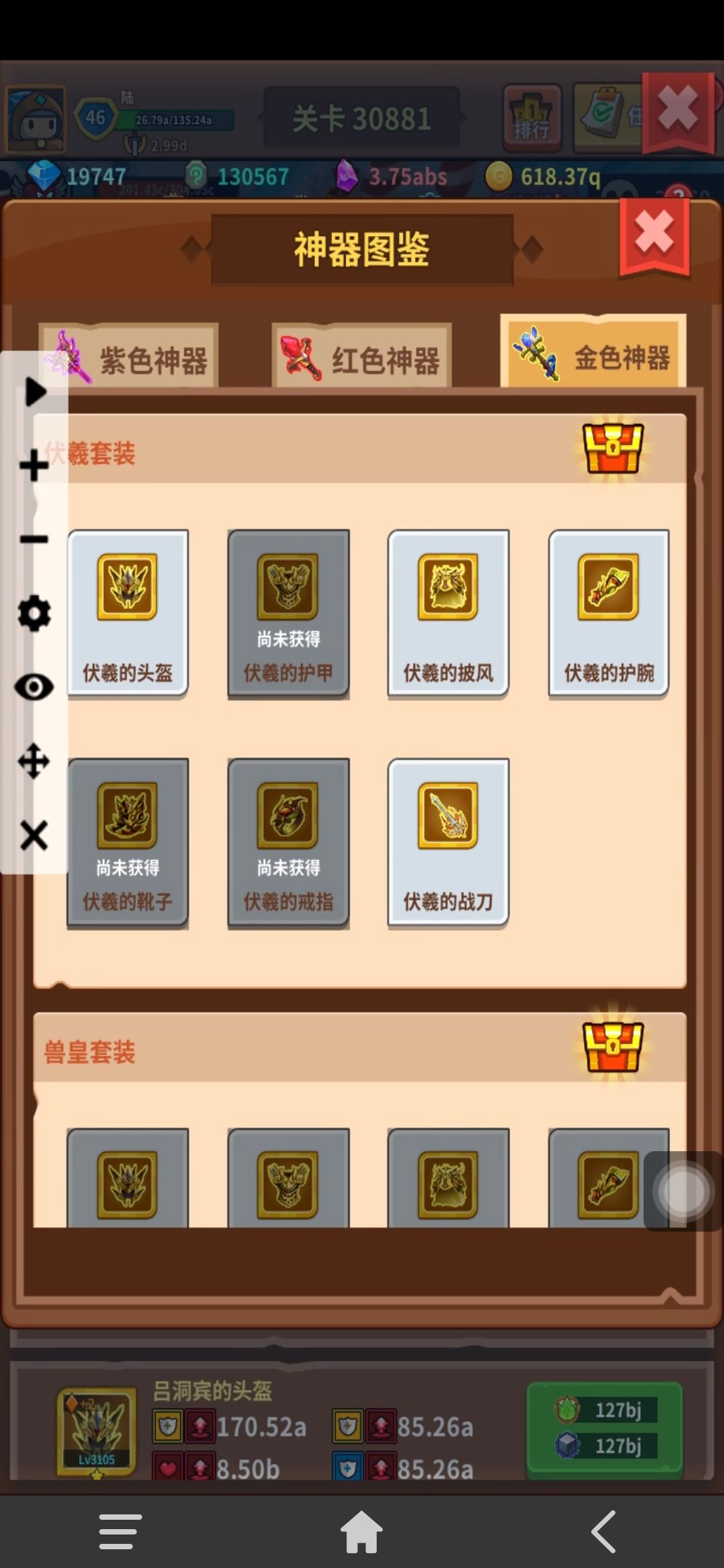 最最最重要的,这是这个游戏的唯一亲爹。所有的战力提升都主要依赖于它。所以钻石都主要拿去打副本,为了给神器升级。