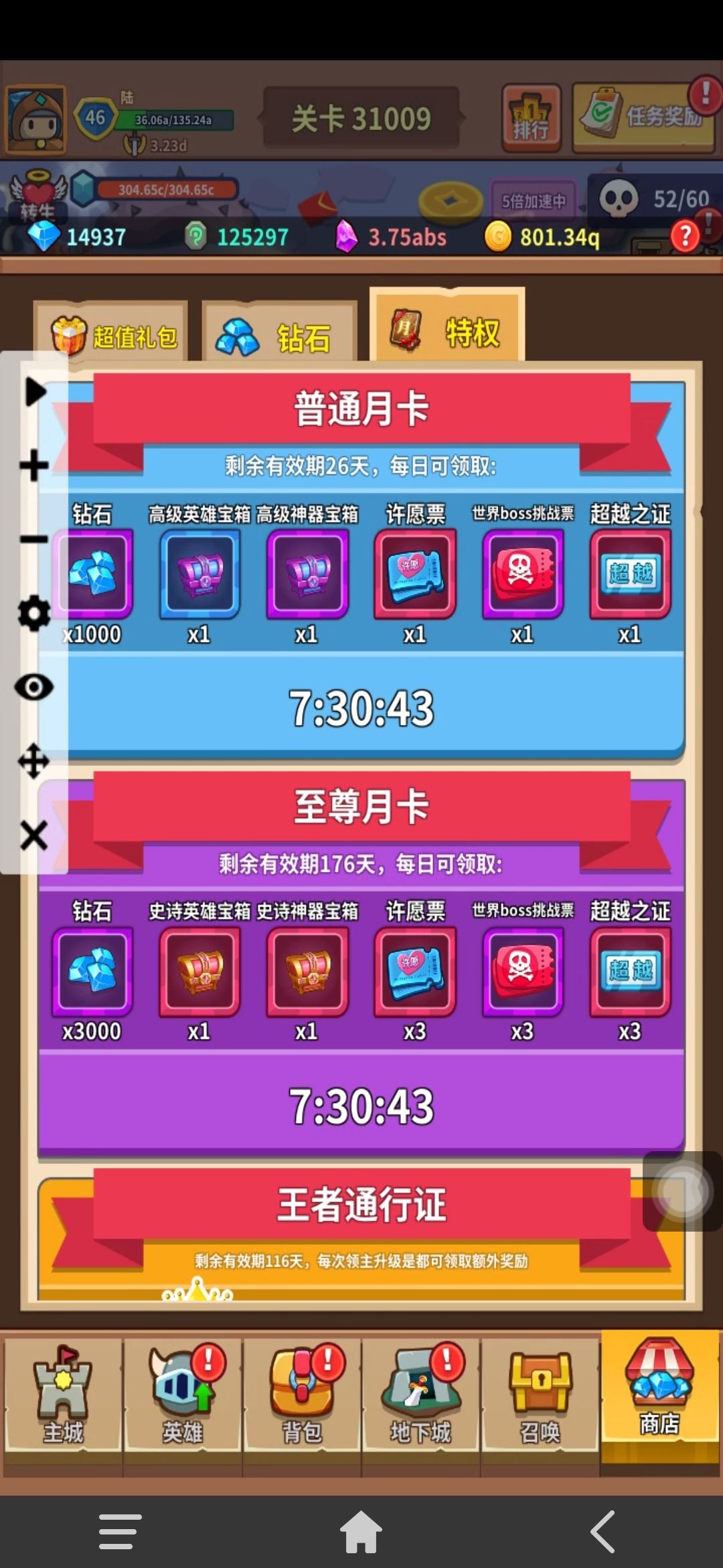 我推荐大月卡,比小月卡资源好,还可以享受5倍速和传送100关。(这也是我觉得不合理的地方,为什么要区别对待大小月卡用户。。)