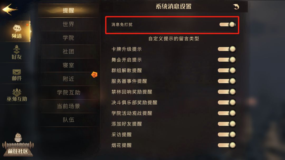 图1:【社交】- 调整一下决斗的快捷聊天,让队友能够更好的配合自己(尤其是使用邓布利多伙伴卡时)。