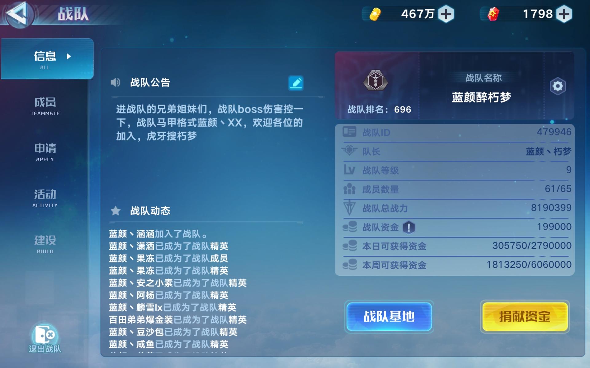 目前,战队处于发展重要阶段,需要各位的支持,职位按照贡献给,不需要多强战力,只需要活跃,常驻大佬多,有什么问题直接在战队群里问就行