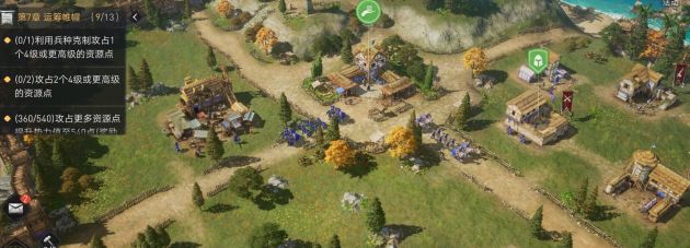外城资源主要是通过占领资源地块来获得资源,可以占领的资源点除了常规的粮食、木头、石头和金子之外,也有少量的铜矿可以占领,占领铜矿可以获得固定铜币产出,用来进行精锐招募。资源地块虽然很多,但等级越高资源产出会越高,同理等级越高守军也会越强,击败守军难度也会逐渐提升,需要逐渐提升主城等级解锁占领地块上线,并占领高等级的资源点。另外地图上还会定时出现富饶的资源地块,占领可以消耗资源进行建造,大幅度提高地块资源产出。使用行动令也可以快速采集一块资源的资源,采集时间固定,但资源地块等级越高,采集的资源也会越多。