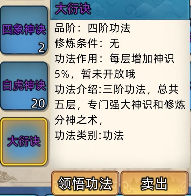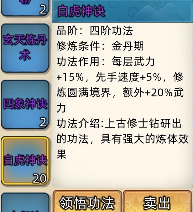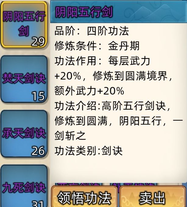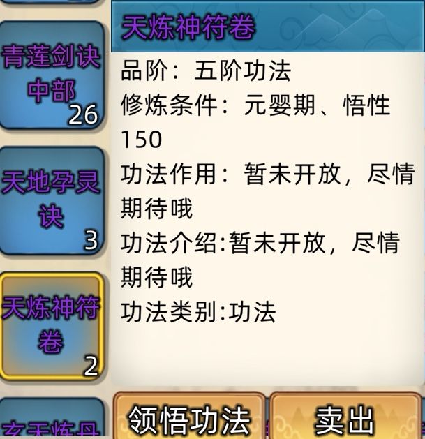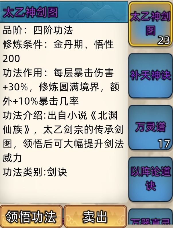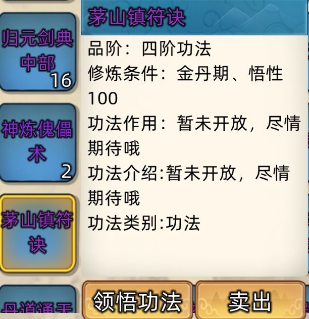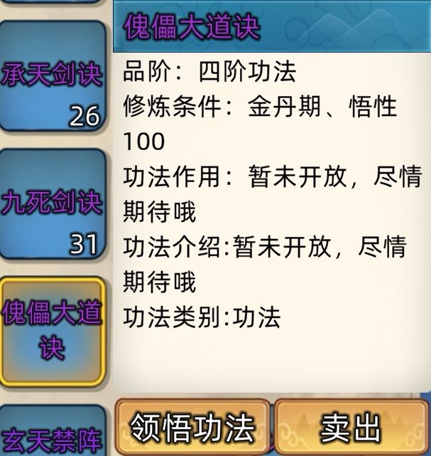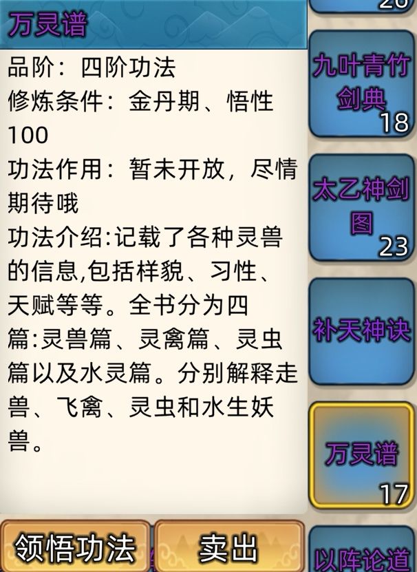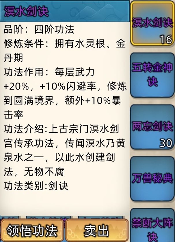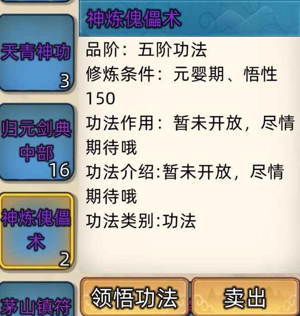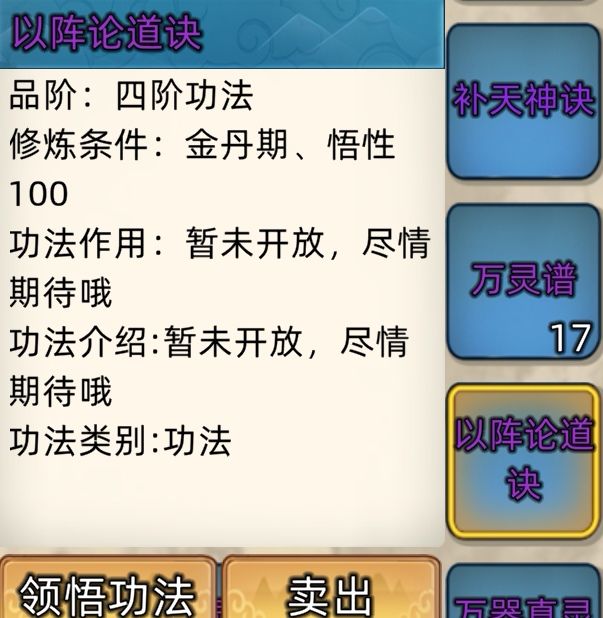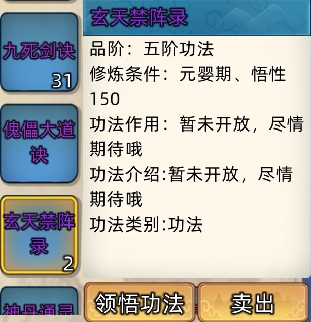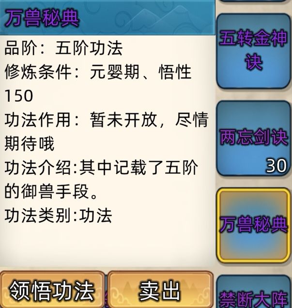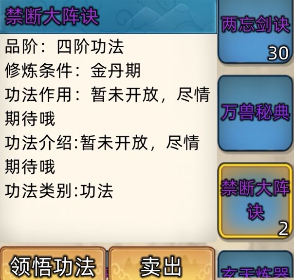 五阶功法:12本开放+4本未开放功法。