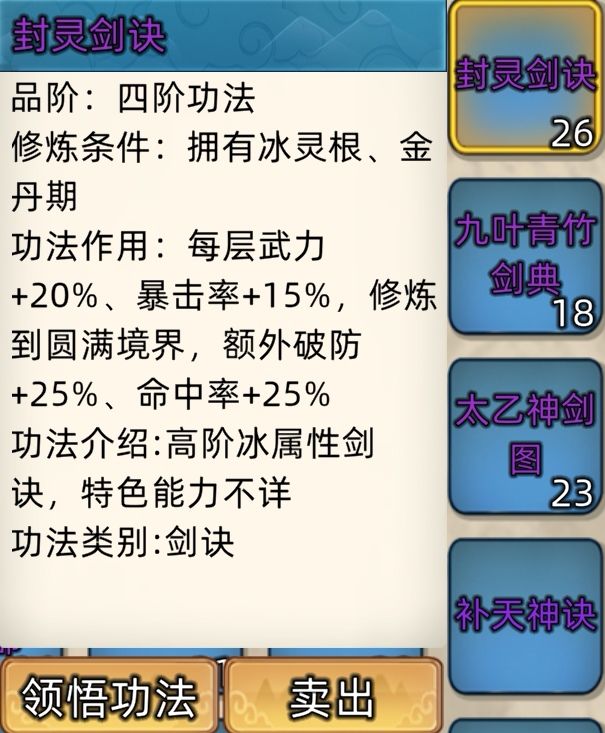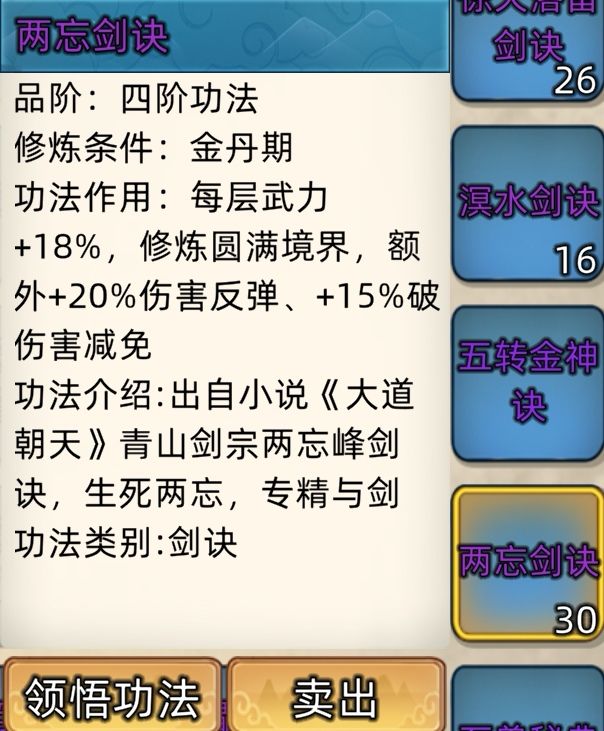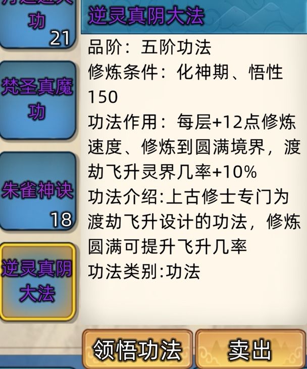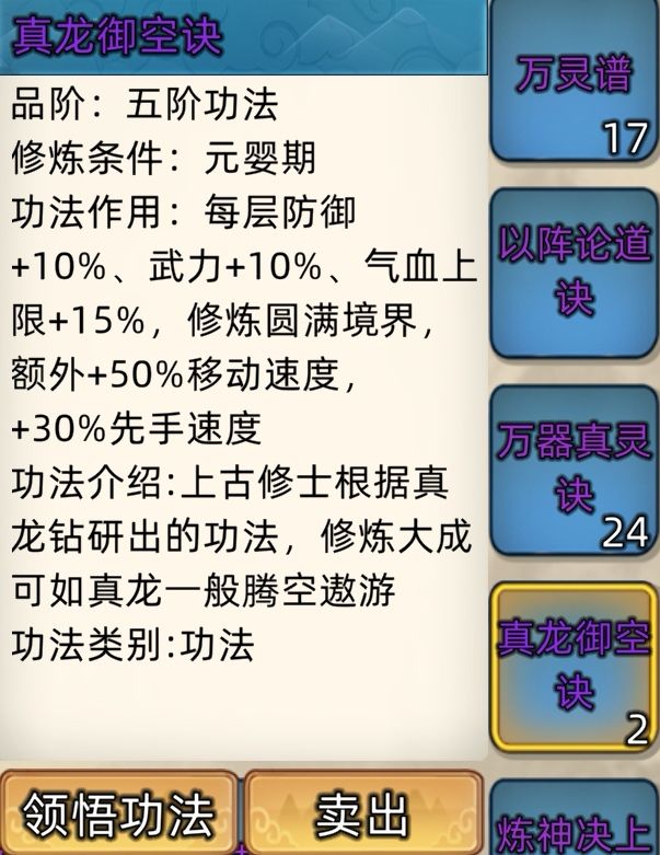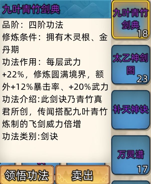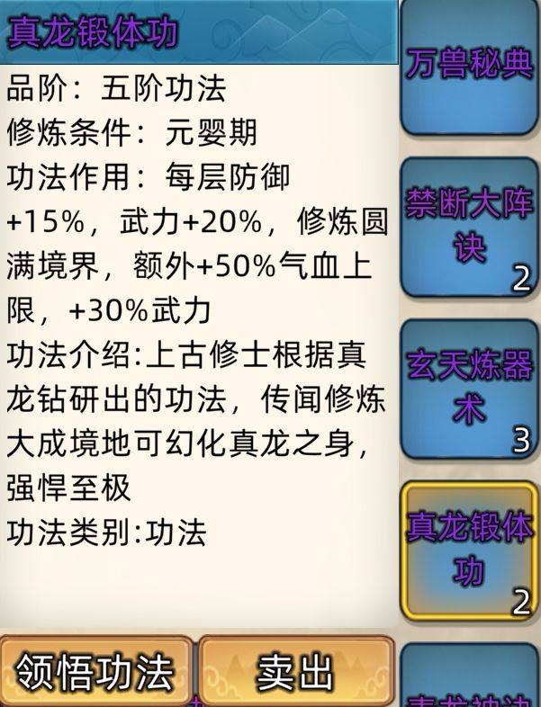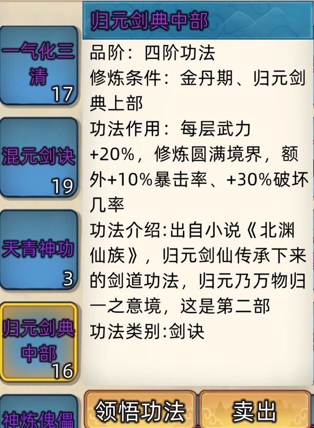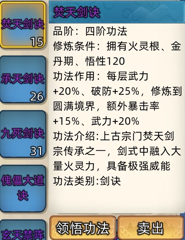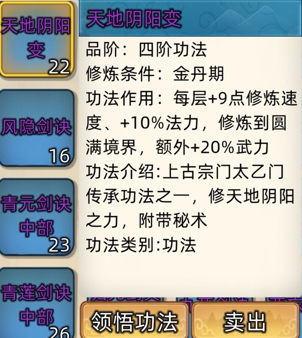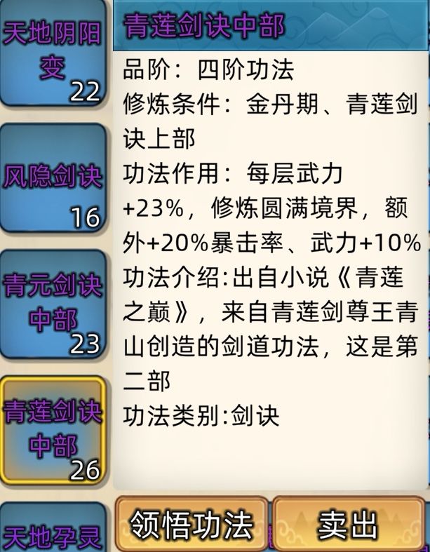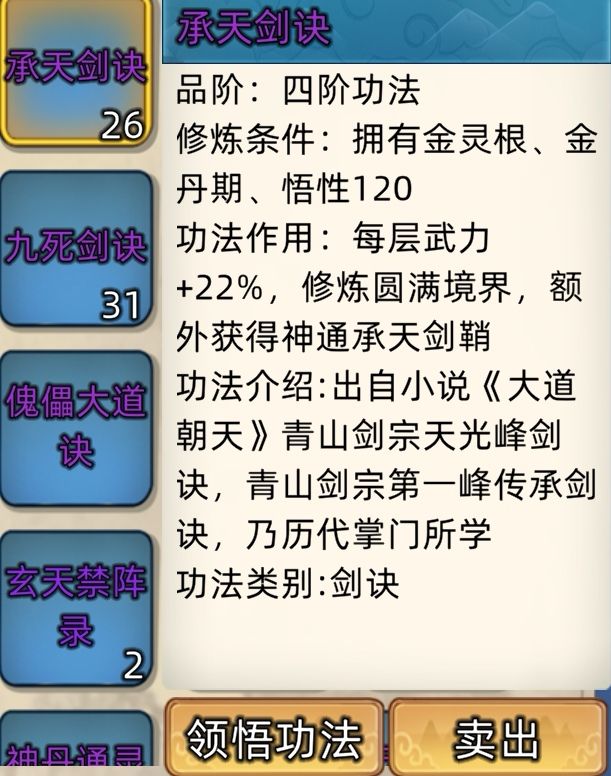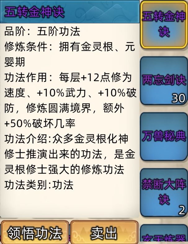 五阶功法:12本开放+4本未开放功法。