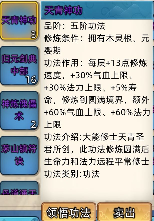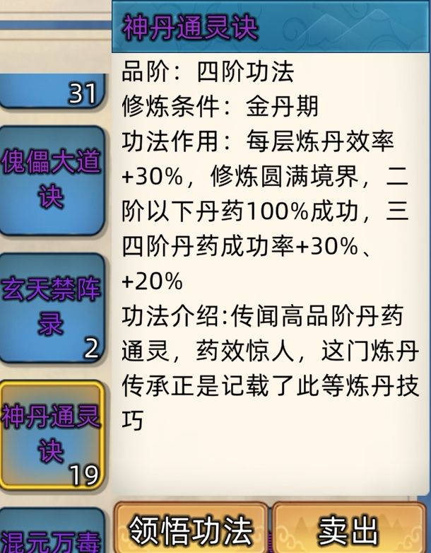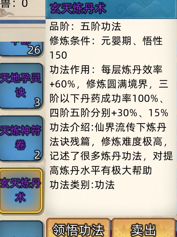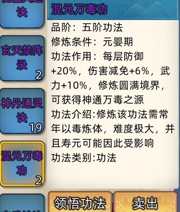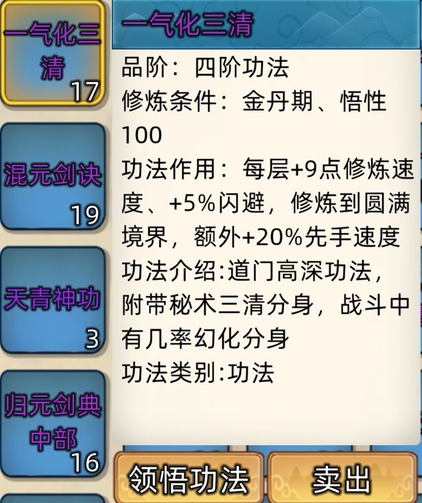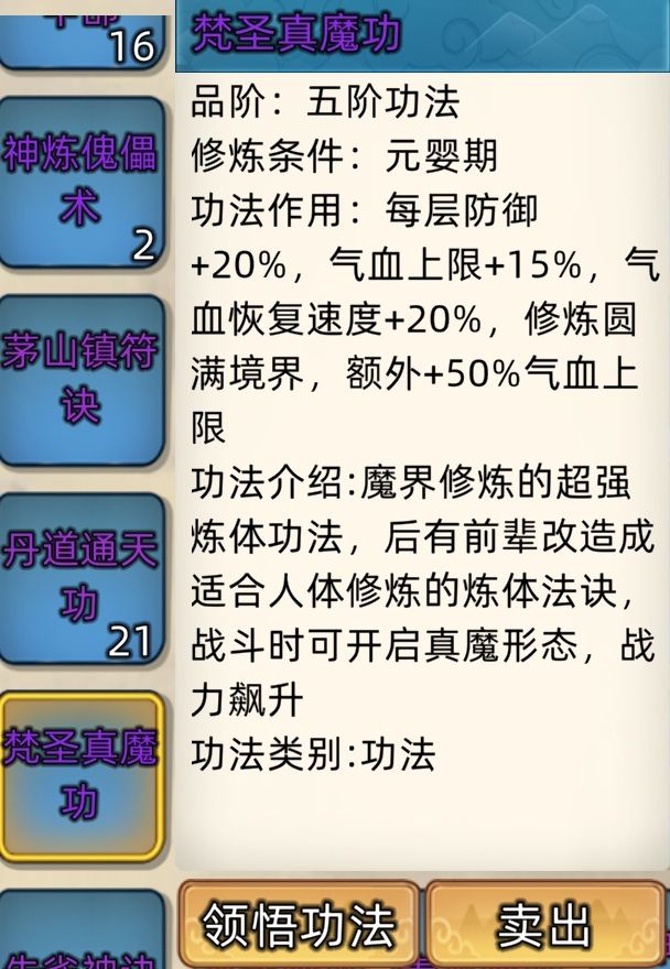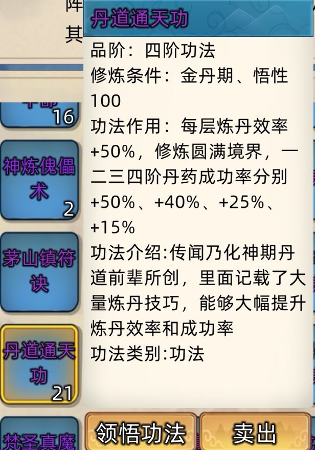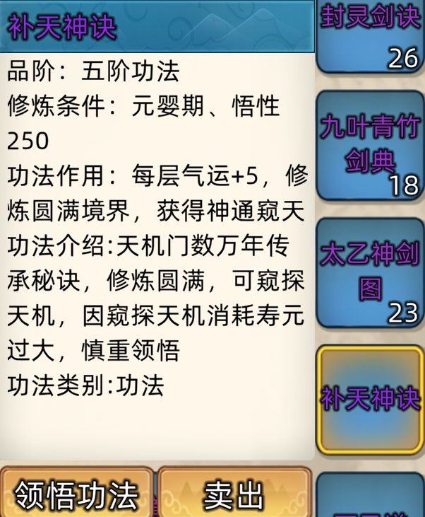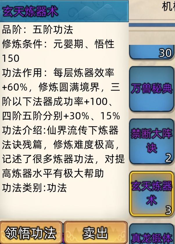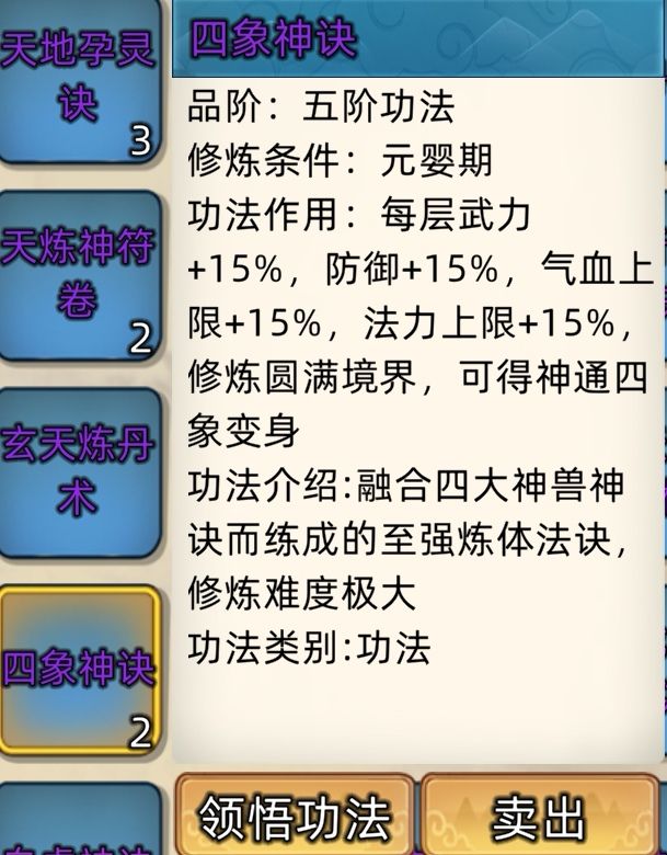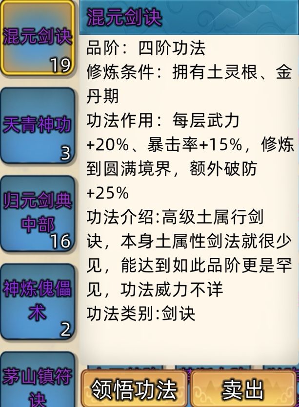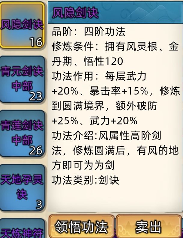 五阶功法:12本开放+4本未开放功法。