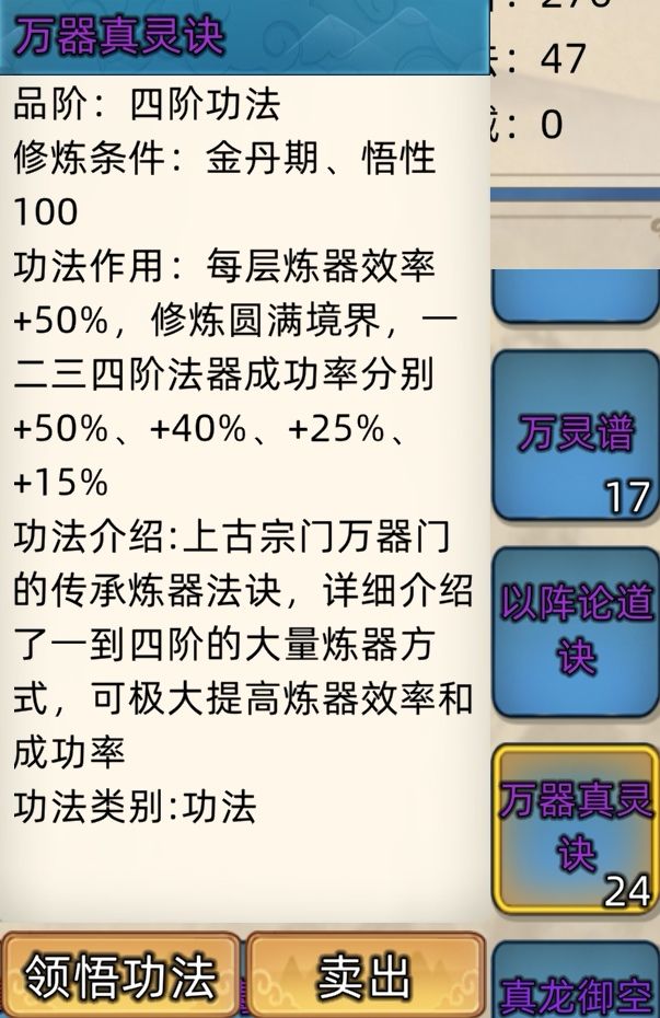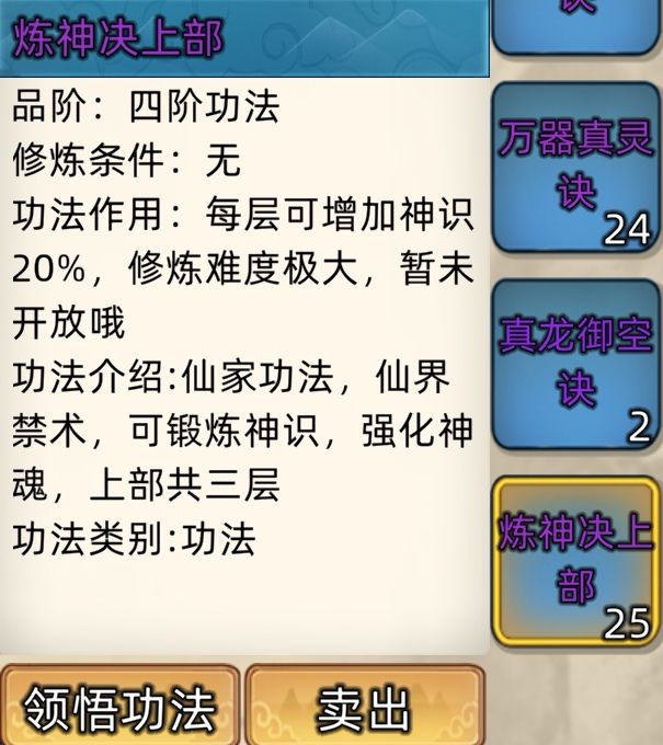 四阶功法:24本开放+7本未开放功法。