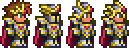 神圣套:在祭坛处用54个神圣锭造出,法师对应的是神圣头饰,套装将有最大魔力值增加100,魔法伤害和暴击率各增加12%的增益,防御力为31。但最为人瞩目的是它在攻击敌人后获得30s免伤机会的套装奖励,这个奖励在整体难度更困难靠防御力抵御攻击已经没有意义的战斗中非常有效。