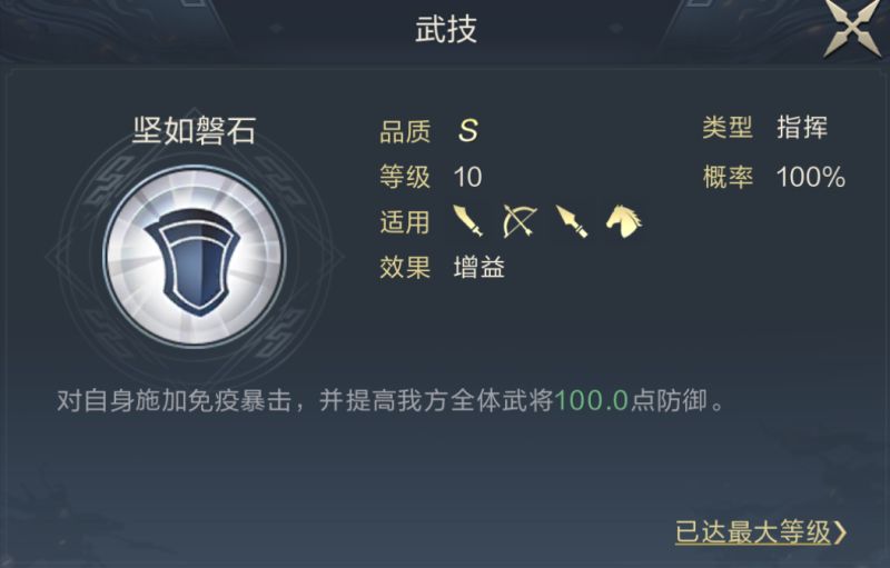 十二奇策作为指挥型武技,并不需要追求速度,全智提升负面伤害收益即可,推荐搭配八阵名成与坚如磐石。经过调智后,张角开局不会吃到空城计效果,在有输出空间的情况下,配合SP荀攸的奇策能保证战斗力,所以提升队伍对武力队伍的抵抗力较好。