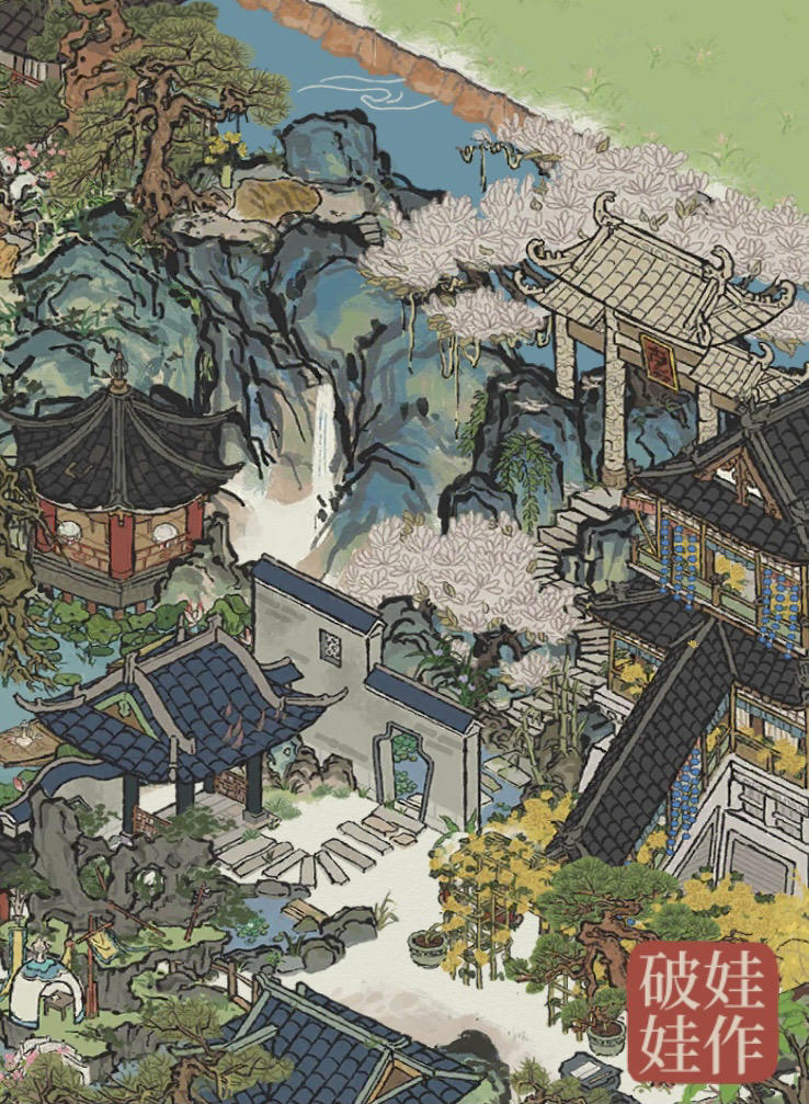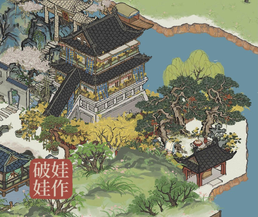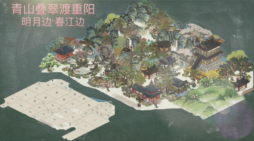 扬州城郊地块平整,把仓库里的漂亮建筑都取出来堆了个漂亮的山水!ps:重阳楼的布置是参考论坛大佬的。