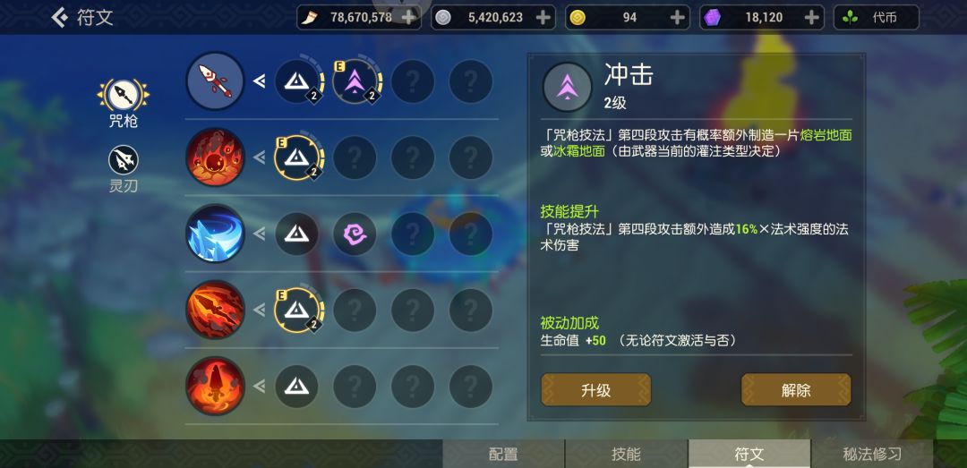 如图,这个进阶和冲击只能选一个,那我之前升冲击用的符文石不是白费了嘛?
