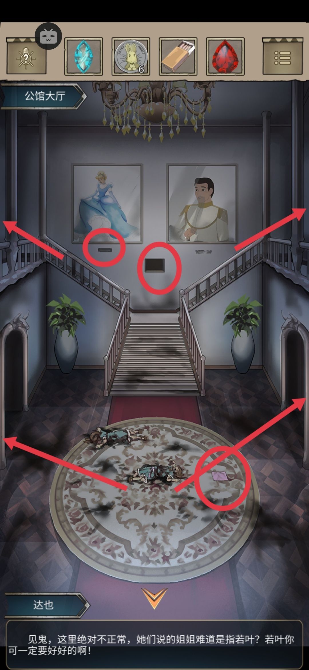 两个小姑娘告诉我“姐姐在等哥哥。”是若叶在等我吗?突然间眼前景象瞬间变幻,诡异!不行得快点找到若叶叶到底在哪里呢!现在只能在公馆里找找线索。
