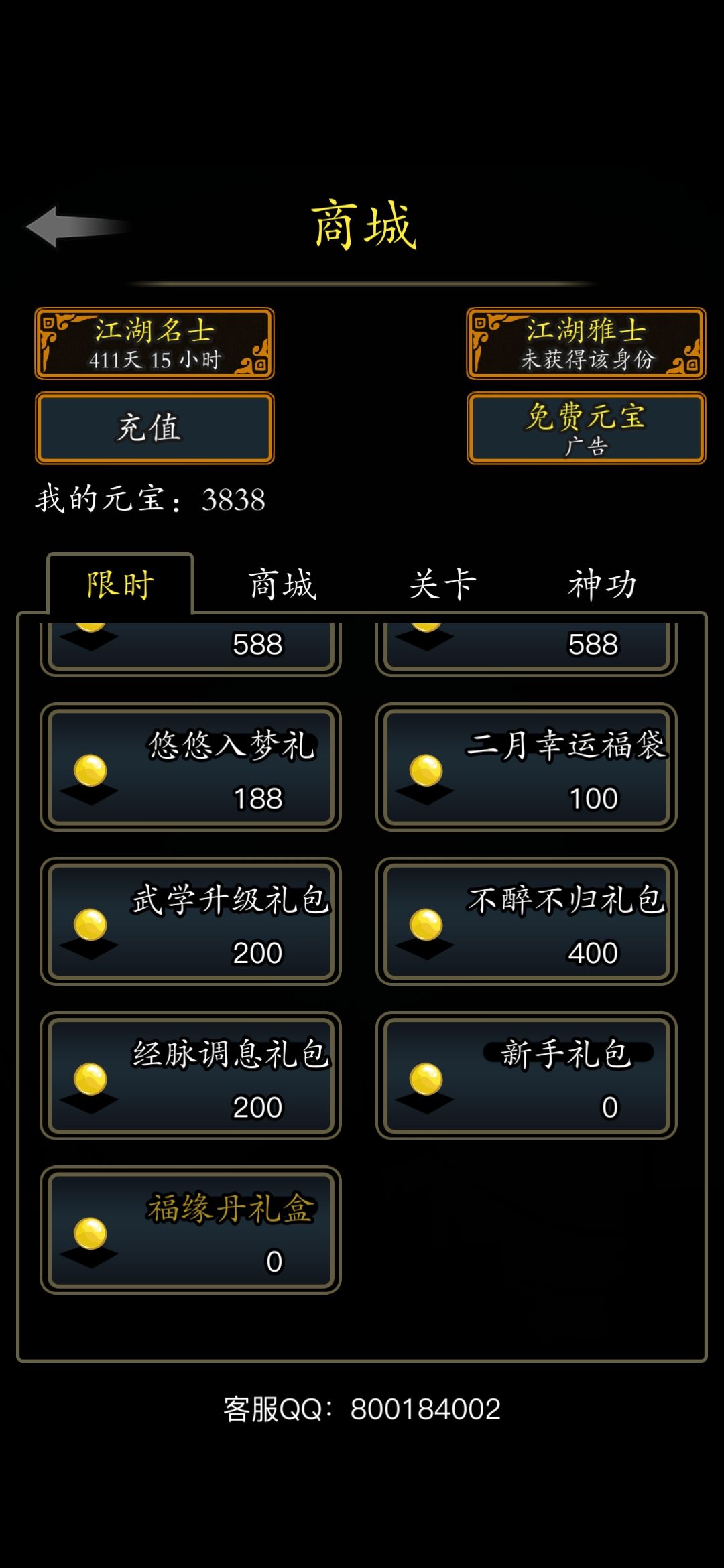 这次活动送的名士的福源丹在限时礼包这里