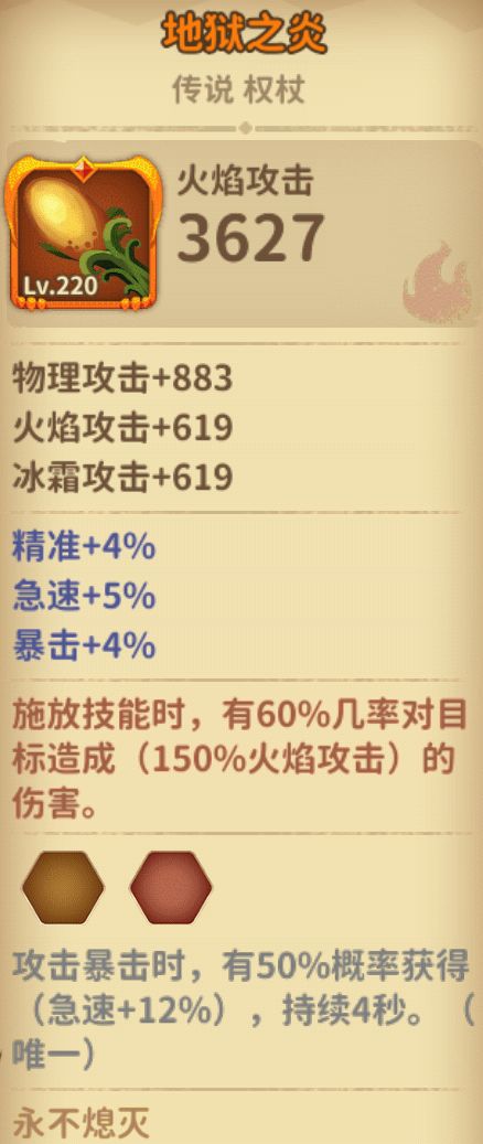 永恒风暴(攻击暴击时给自己加百分之二十火冰属性)