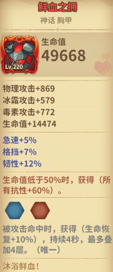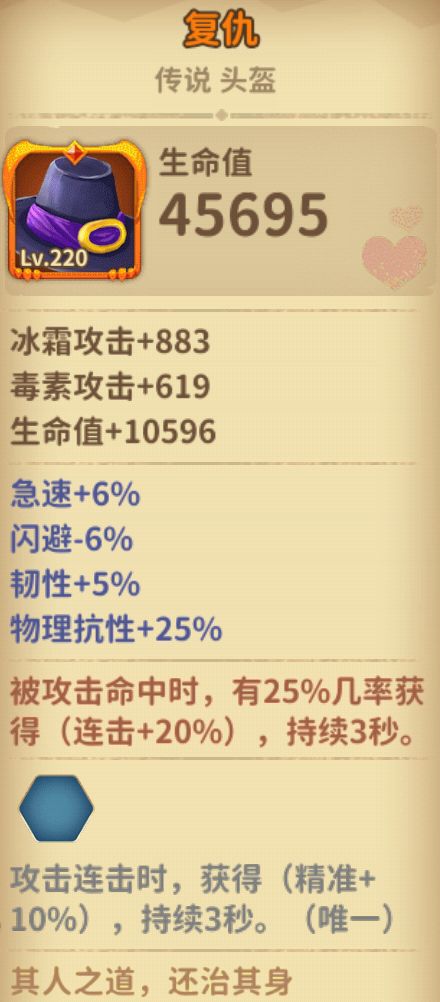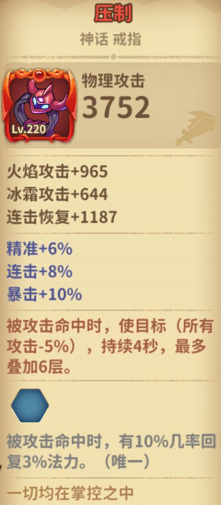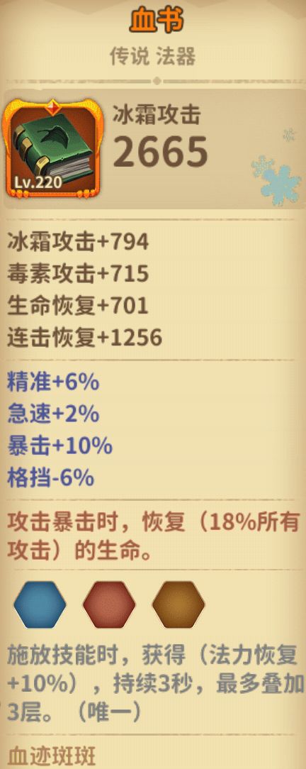 同样主物理或者火,给审判或巫师配带,多出来的给别的佣兵,副生命值和暴击回复,非常好用!!!