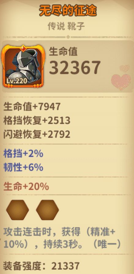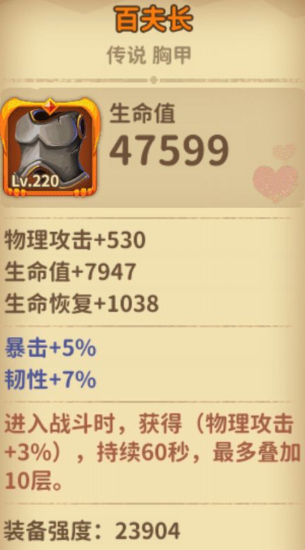 做好后我们也要适当的把装备强化一下,强化到10-28均可,虽然是打工装,打工装的强度决定体力消耗的速度,你不希望刷个体力个把小时刷不完吧哈哈,这也是投资对不对,让打工仔干活给我们打金币什么的,属性尽量以物理或者火为主,副生命值和暴击回复,非常好用!!!
