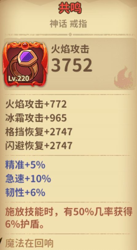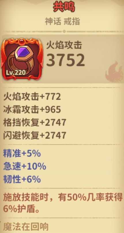 如果是做了王者系列装备,我们只需要把戒指更换成神话装“共鸣”下面是共鸣戒指的属性~